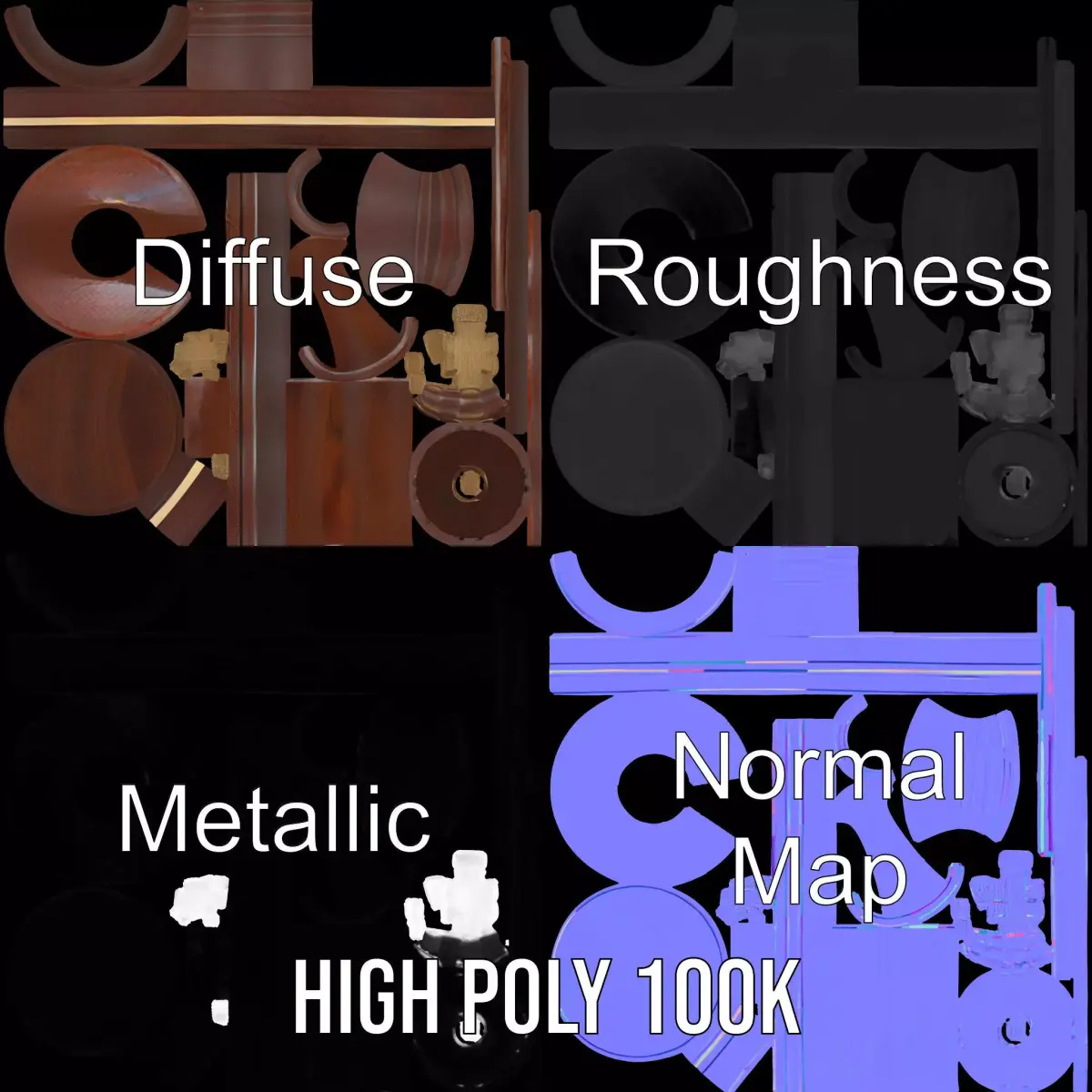 This intricately designed Mahogany King Chess Piece 3D model captures the elegance of a classic chess piece with a rich, polished finish. Perfect for use in digital board games, animation, and interior visualizations, the model's realistic wood texture elevates any project. Each model has 3 levels of detail: low-poly (1000 triangles for mobile), middle-poly (10,000 triangles for environment), and high-poly (100,000 triangles), which allows for the use of this model in production rendering (such as 3ds Max, Maya, Cinema4D, Blender, Vray/Corona/Cycles, and all others), game engines (Unity and Unreal compatible), and interactive presentations, providing a choice of detail based on the LOD System principle. The model's textures are PBR, Diffuse, NormalMap, and reflection/roughness/metallic, suitable for any modern rendering engine. All models are accurately unwrapped with no overlapping UV. All textures are 4096*4096 in size. Like and leave a comment if you enjoy this model!
