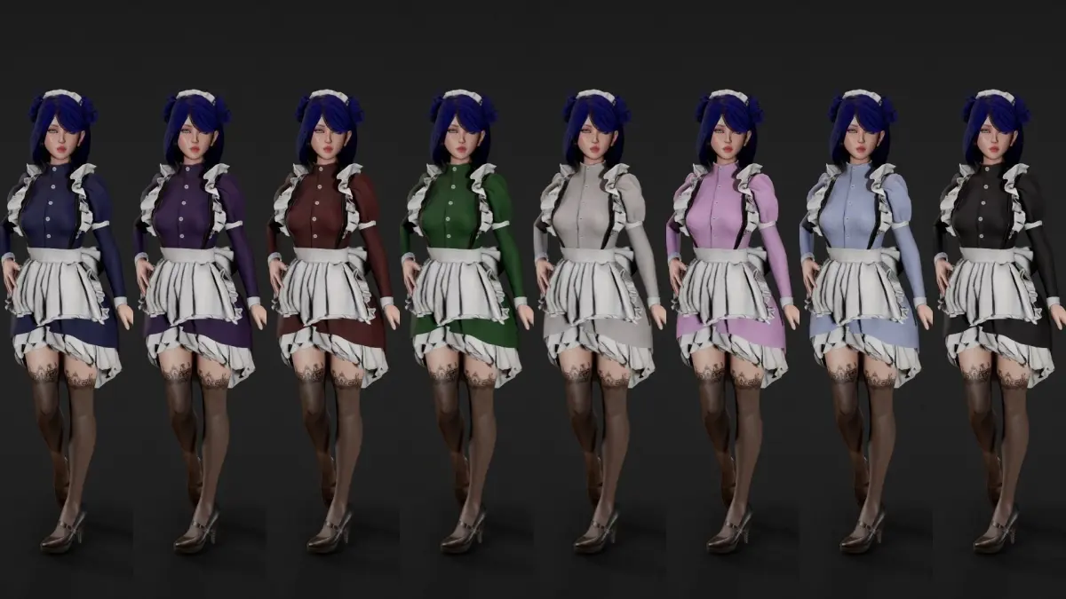 4K Textures - normal, metallic, roughness, albedo, opacity, thickness, emissive(PBR Textures Metal/Roughness). Has many hair\eyes\cloth\body\face colors.