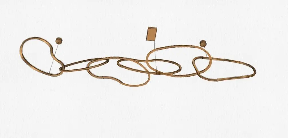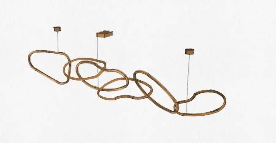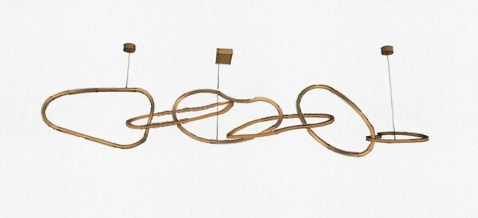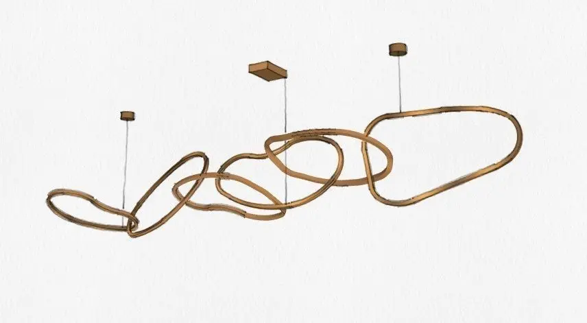 Maillon 6 Horizontal LED Pendant Light. Elegant grouping of 6 metal rings with integrated LED diffusing a clean natural light. Modeled with brushed gold finish. https://www.astele.com/product/lighting/pendant_lights/maillon-led-pendant-light