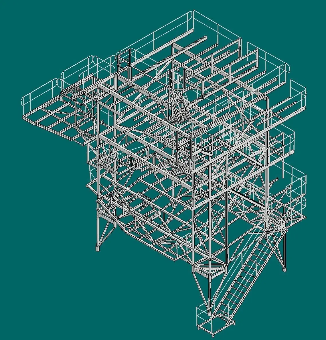 Designed shows a steel structure used for maintenance . This shows the structural concept c/w handrails.Sat file and Inventor files attached for hire