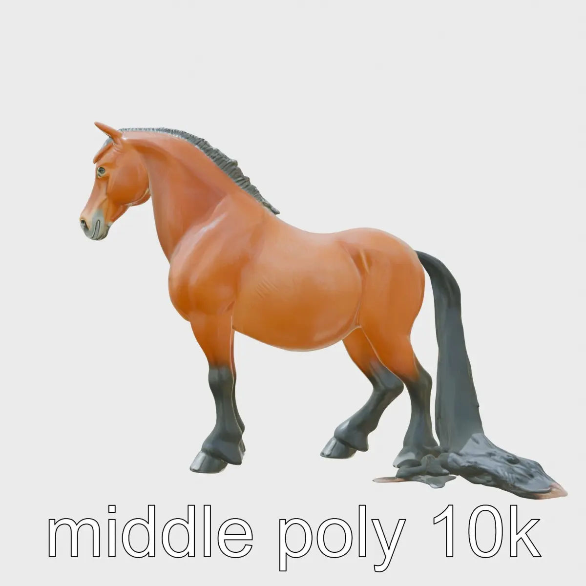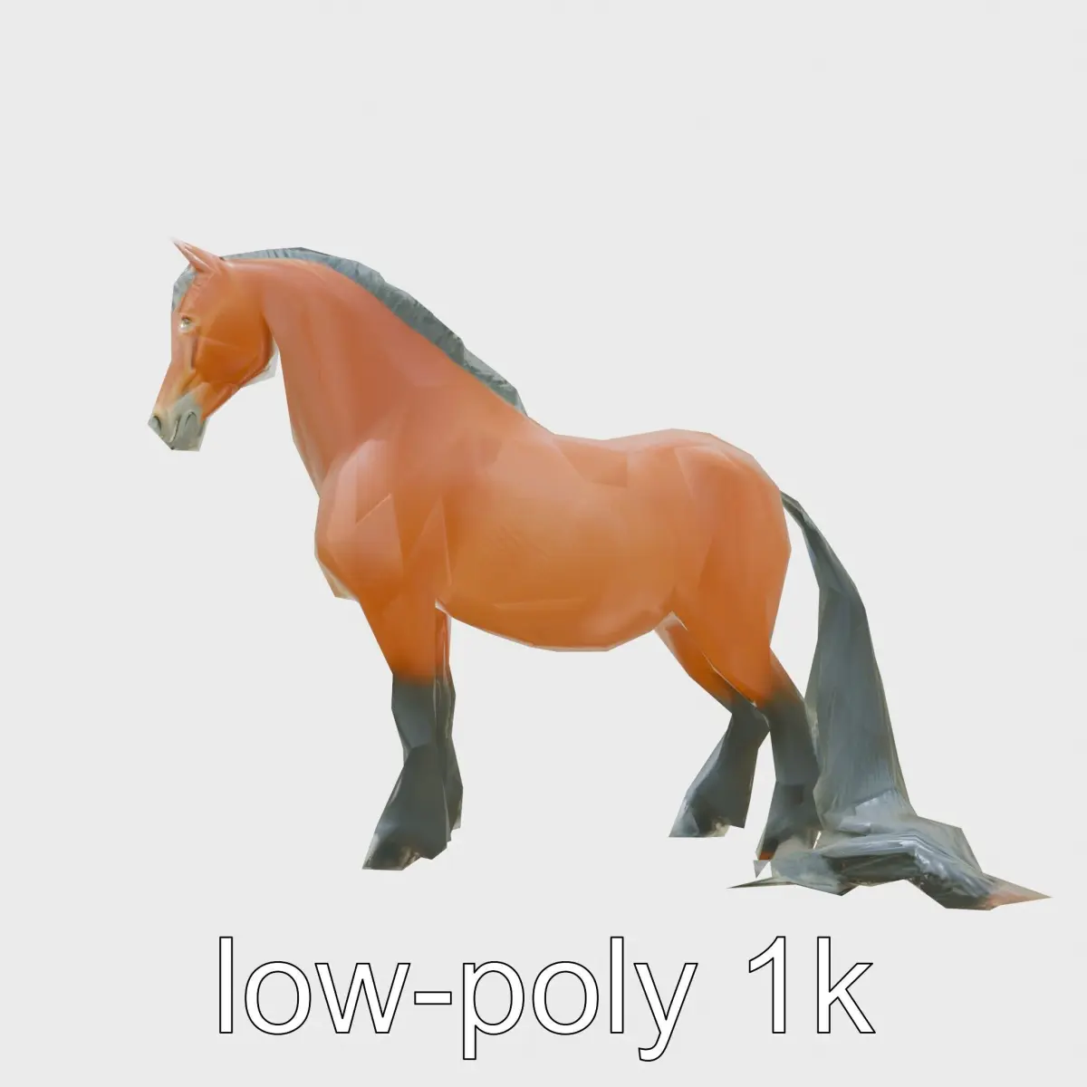 This 3D model represents a Majestic Bay Friesian Horse with deep brown tones and a commanding presence. Each model comes in three levels of detail: low-poly, middle-poly, and high-poly. These options allow usage in production rendering with software such as 3ds Max, Maya, Cinema4D, Blender, and more. It's compatible with game engines like Unity and Unreal, as well as interactive presentations. The model's versatility makes it ideal for animations, games, and virtual reality applications. It features PBR textures, including Diffuse, NormalMap, and Reflection/Roughness/Metallic, which are suitable for any modern rendering engine. Textures are 4096x4096 in size, ensuring high detail and clarity. All models are accurately unwrapped with no overlapping UVs. Enjoy creating with this exceptional model and please like and leave a comment if you find it helpful!