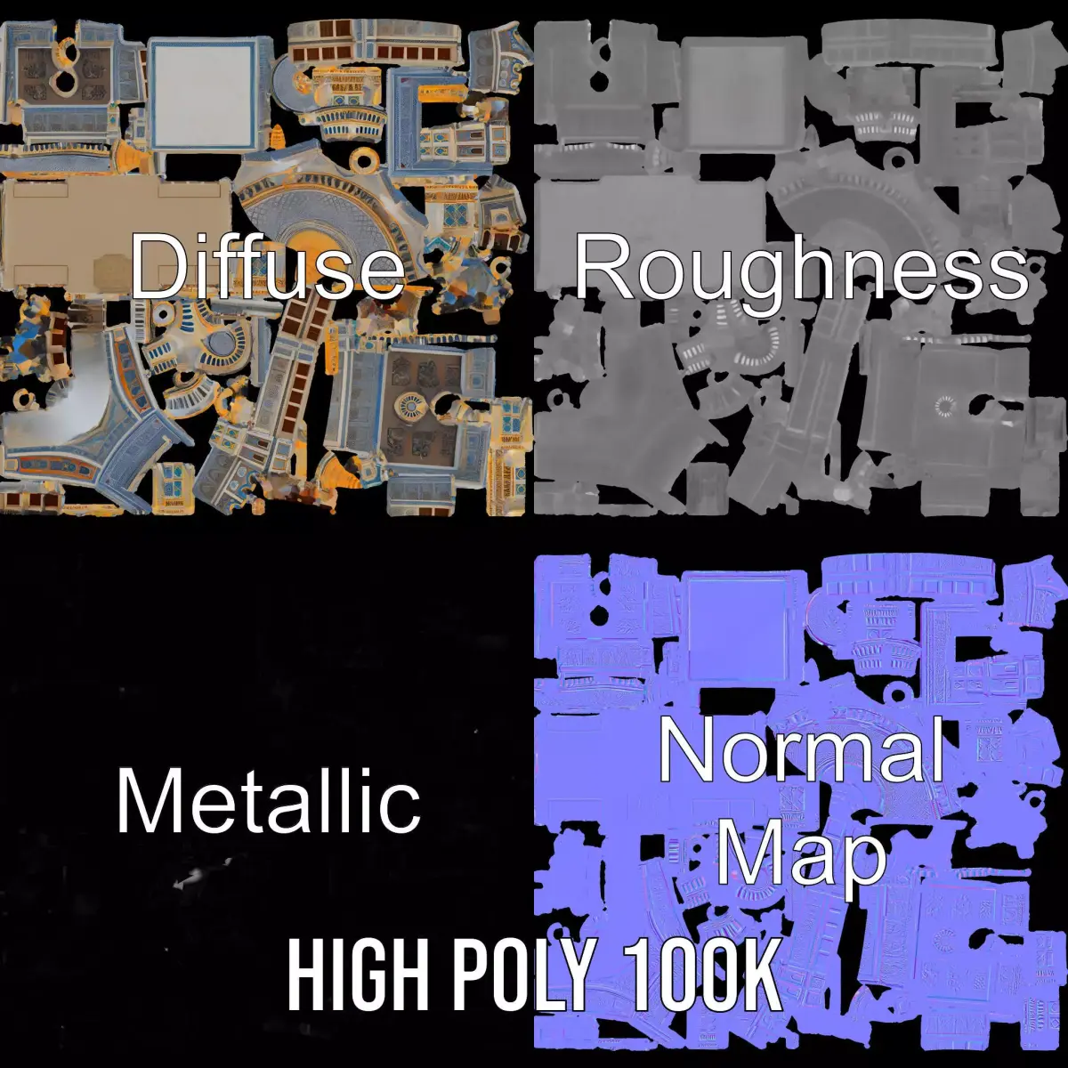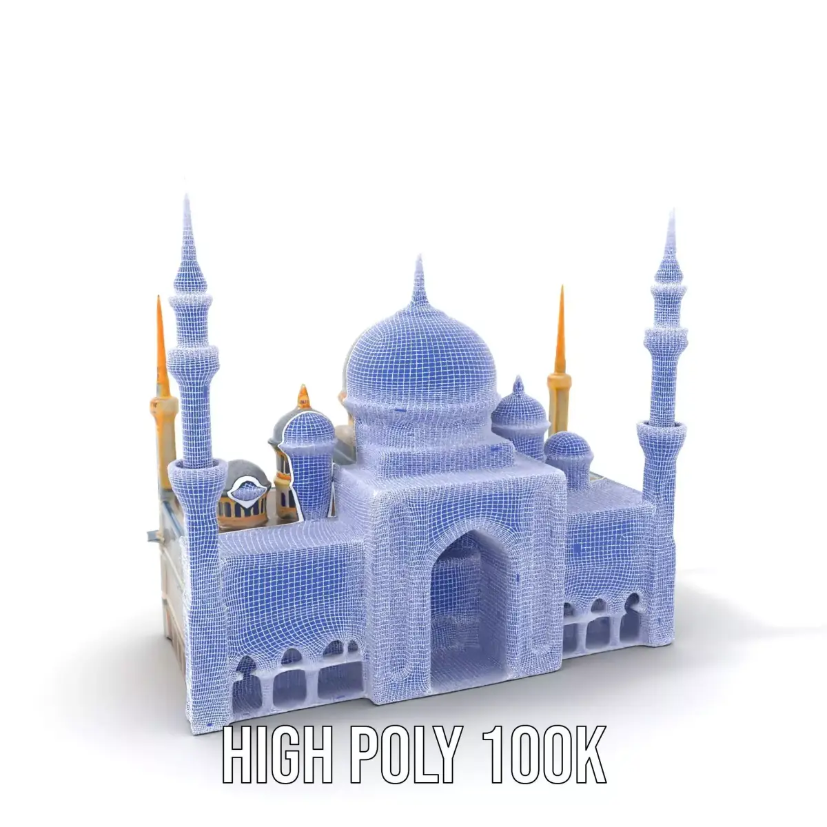 This Majestic Mosque Architecture model pack features an intricately detailed structure with vibrant blue tiles and gold accents, capturing the essence of traditional Islamic architecture. The model is highly suitable for use in historical visualizations, religious education applications, and virtual reality tours. Each model has 3 levels of detail: low-poly (1000 triangles for mobile), middle-poly (10,000 triangles for environment), and high-poly (100,000 triangles), allowing for the use of this model in production rendering (such as 3ds Max, Maya, Cinema4D, Blender, Vray/Corona/Cycles, and many others), game engines (Unity and Unreal compatible), and interactive presentations, providing a choice of detail based on the LOD System principle. The model's textures are PBR, Diffuse, NormalMap, and reflection/roughness/metallic, which are suitable for any modern rendering engine. All models accurately unwrapped and have no overlapping UVs. All textures are 4096x4096 in size. Please like and leave a comment for the model if you liked it.