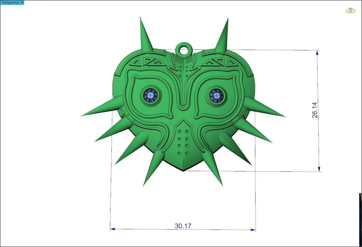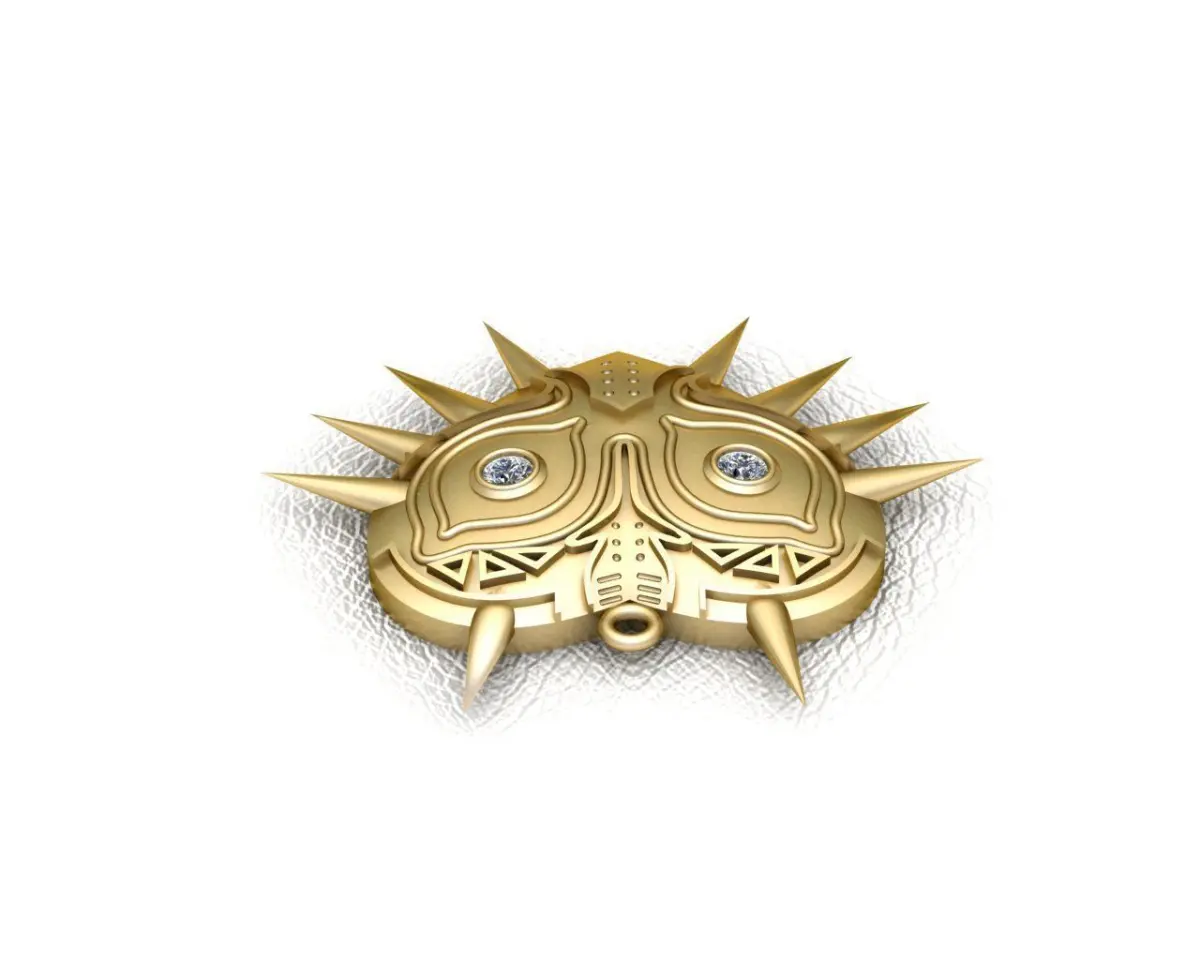 Majora's Mask Medalwith a size of approximately 30 x 26 mmand an approximate weight of 11.5 grams in 14kwith 2 stones of 3 mmbased on Zelda video gameIt is an excellent medal for fans of video games
