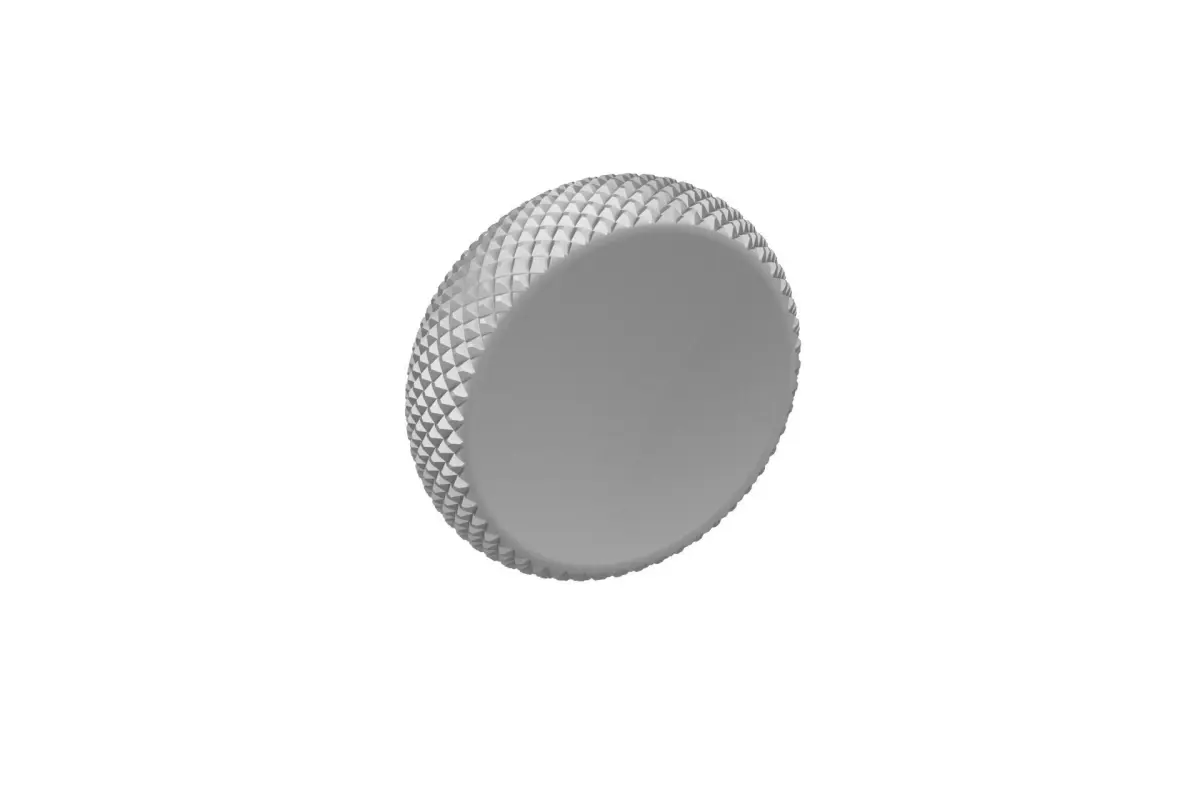 This is a knob model that is custom designed for fitting in a cover. On the lower side, there is a circular opening for press fitting to a shaft and used for pulling. The knurling is custom designed based on ergonomics and maximum grip performance.The circular opening on the lower side can be customized according to your needs and the model can also me scaled to fit your needs.You can scale it to match your needs. Along with the native Solidworks file, you can also find parasolid, iges and step formats as well as stl, amf and 3mf. Polygon file is also attached.