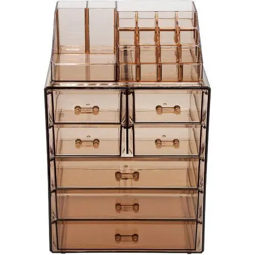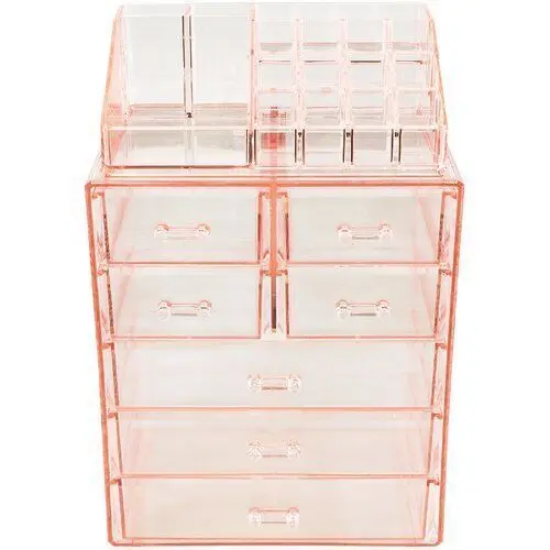 - Give your makeup a makeover and create your own mini salon with this glam cosmetic organizer. Its clear acrylic design, besides being oh-so-chic, puts your collection on display, eliminating the need to rummage around for that perfect shade of lipstick. A detachable mirror makes up-close grooming a breeze.