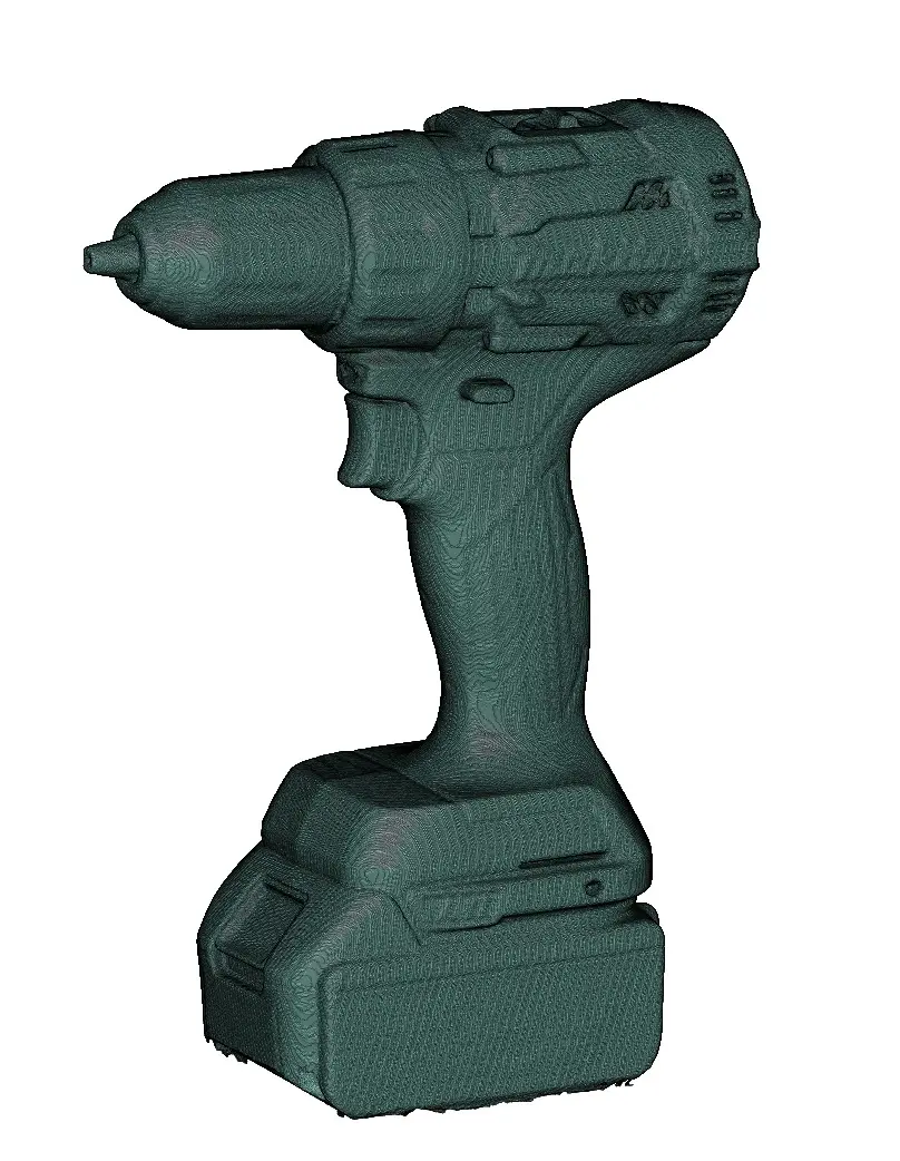 Detailed scan with texture of makita power drill 18v, bottom of battery is not scanned.