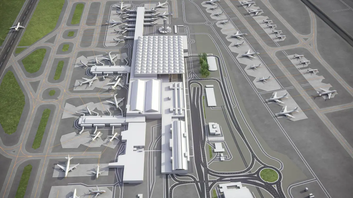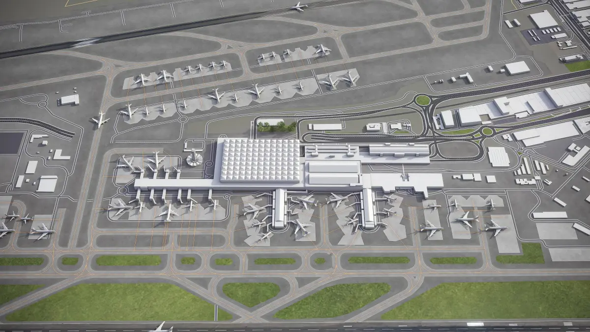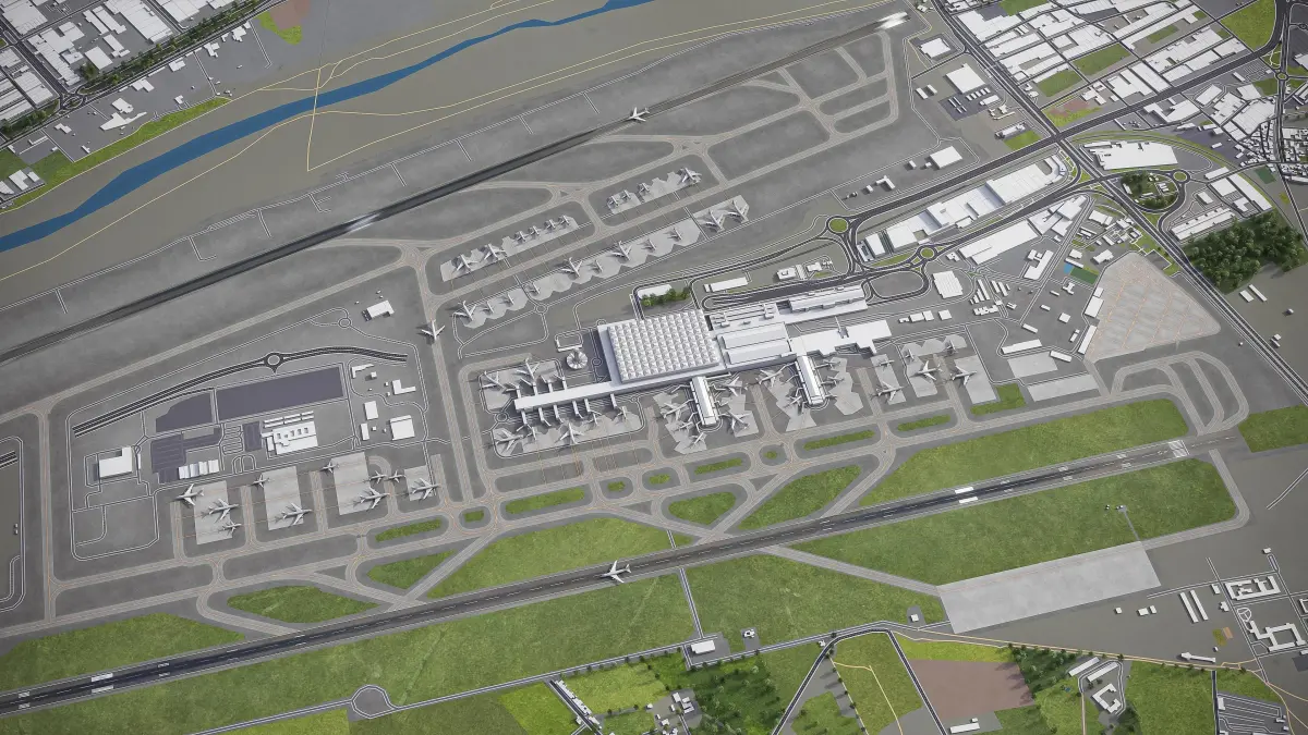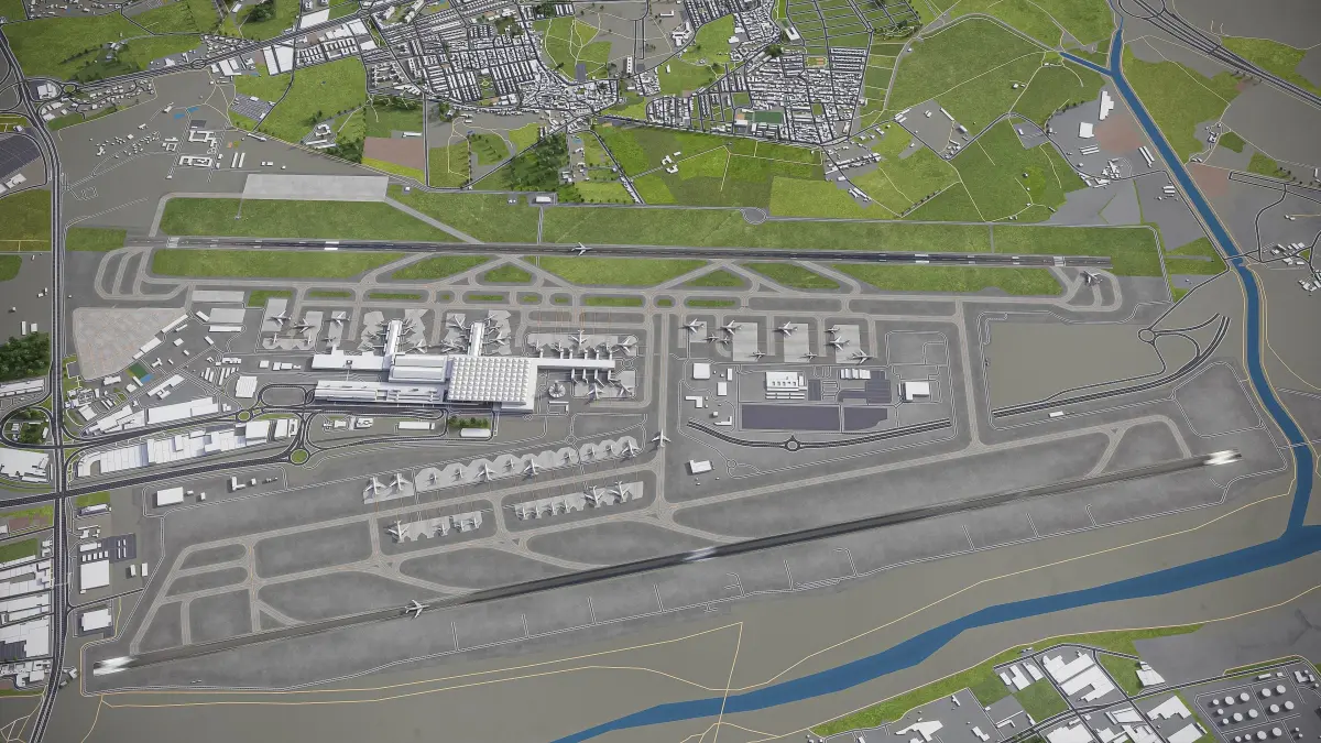 - This airport model is georeferenced, exact and accurate to real-world scale