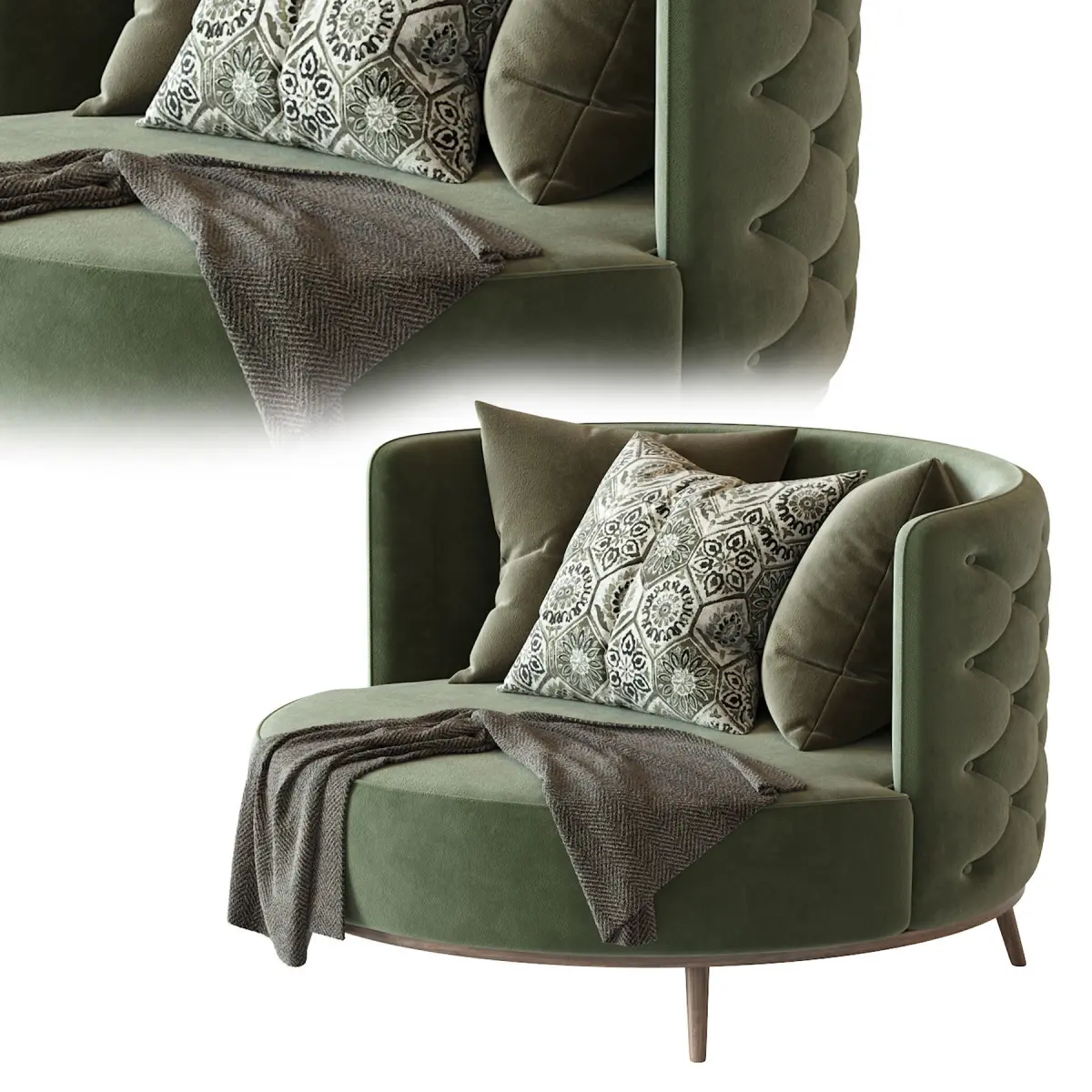 MATERIALS:Upholstery: Green Cotton Velvet, back of the piece in CapitonéLegs: Black LacquerFinishings: High Gloss VarnishPillows: Hexagonal Pattern in Jacquard Fabric