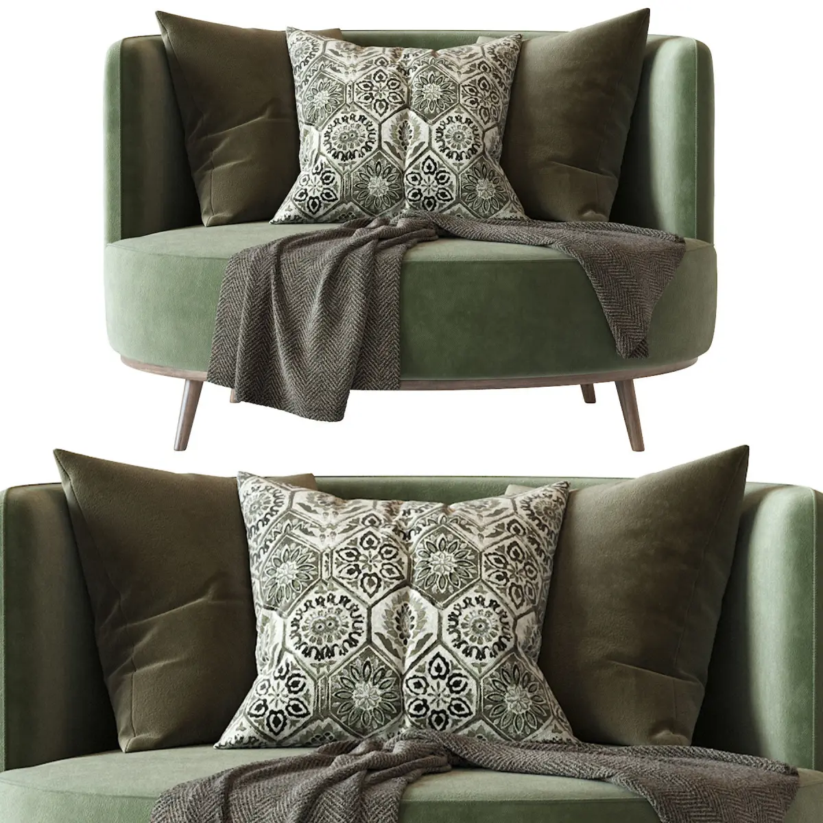 MATERIALUpholstery: Green Cotton VelvetLegs: Lacquered in Black, finished with High Gloss VarnishCushions: Green Geometric Pattern