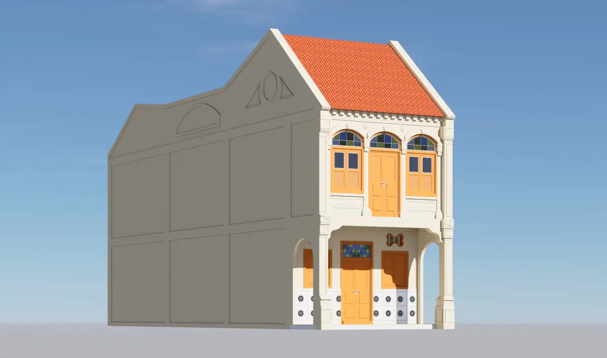 Typical Malaysian Shophouse in the year 1850 usually known as 'Late Strait Eclectic' shophouse design. Can be found in most major cities in Malaysia it is one of UNESCO world cultural heritage site building and well preserved in the country. More similar design can be seen across the South East Asia.
