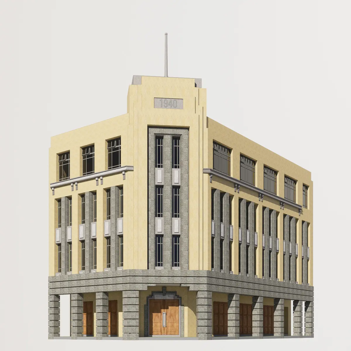 Typical Malaysian Shophouses in the 1940s were commonly designed in the Art Deco style. These shophouses can be found in most major cities across Malaysia and are recognized as UNESCO World Cultural Heritage sites, preserved for their historical and architectural significance. Similar designs are also prevalent across Southeast Asia. Corner shophouses, in particular, were often the main highlight of a street, typically featuring higher floors and greater height compared to neighboring buildings.