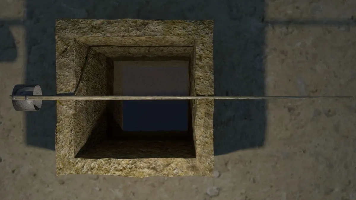 A Maldivian well made from hardpan, a galvanised metal bucket and a long stick.