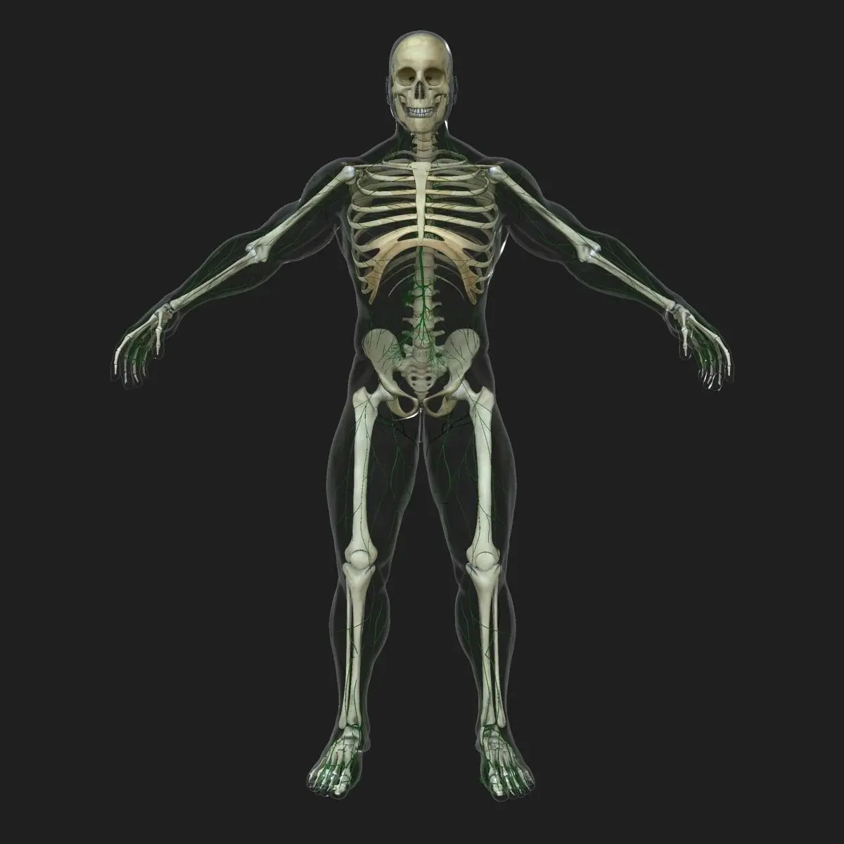 ==FEATURES==Detailed Lymphatic system with full body skeleton-X-Ray Shader for the Skin (Ready to render exactly as shown)-Each bone is select-able and named / grouped properly for easy organization-Real World Scale (Male: 6 feet 2 inches, 1.89 meters, 74.6 inches) (Female: 5 feet 10 inches)-Displacement map for extreme detail-Clean edge-loop based topology-Light set up ready to Render