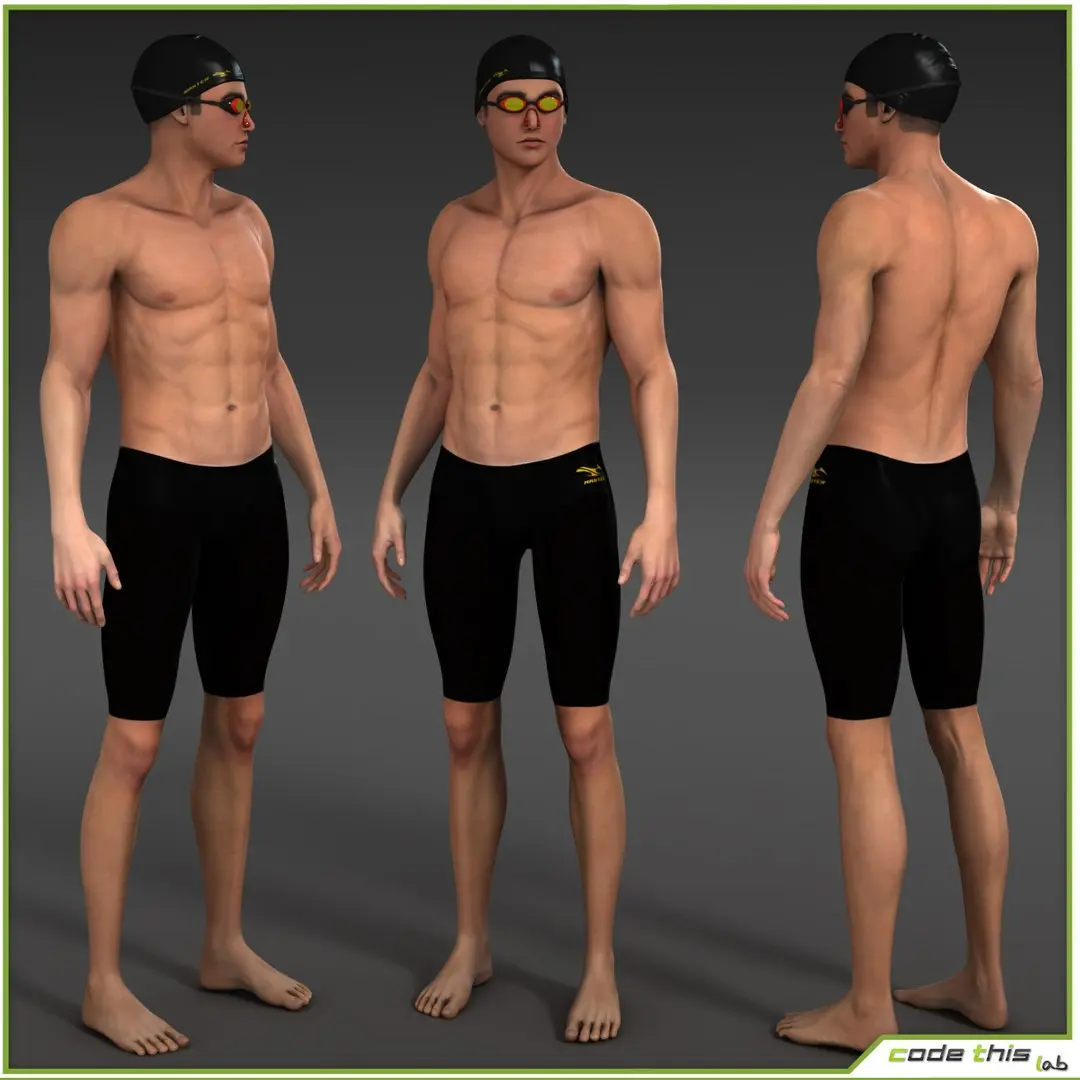 The male swimmer model and its accessories, if any, have been created with 3D Studio Max (2014 version)