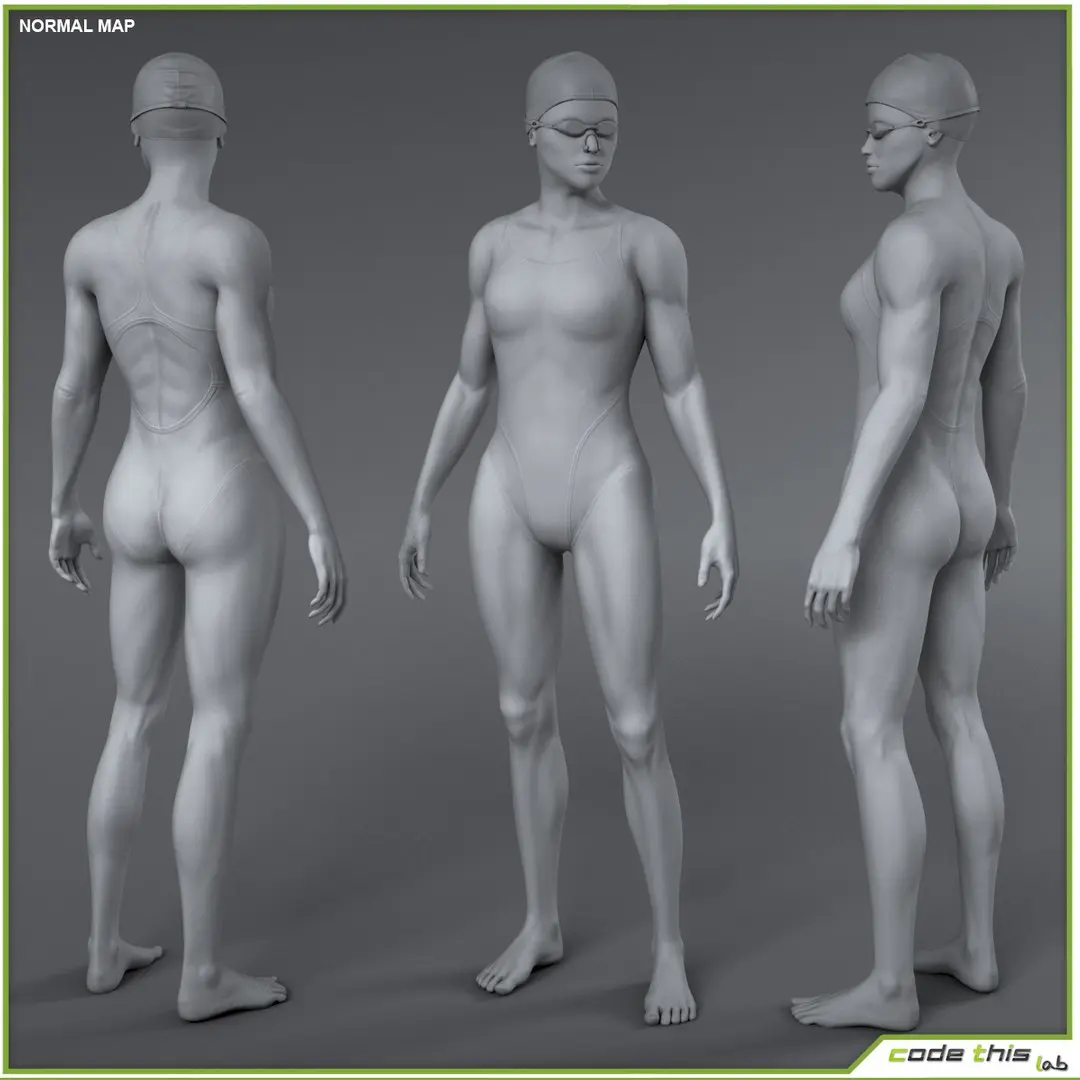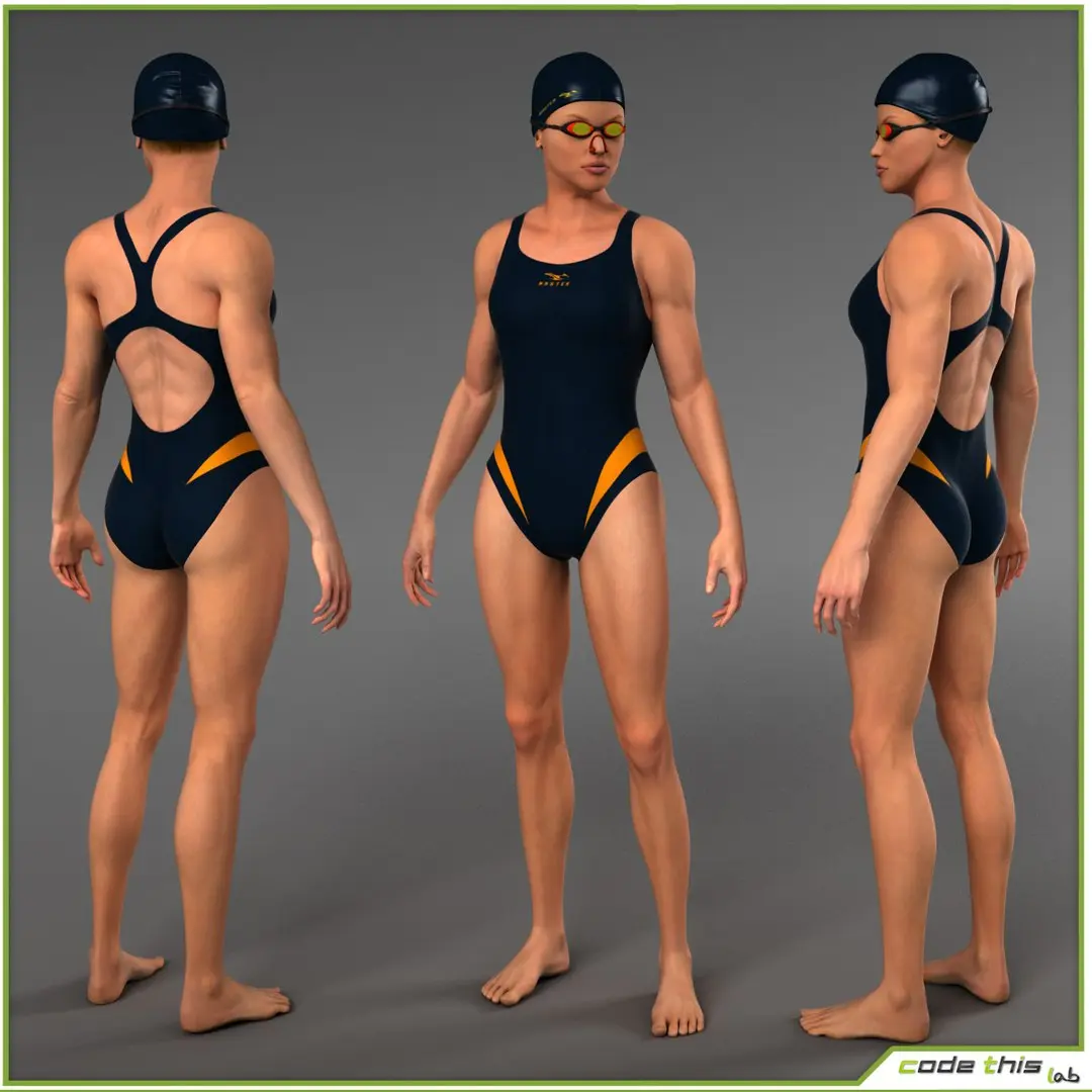 The female swimmer model and its accessories, if any, have been created with 3D Studio Max (2017 version)
