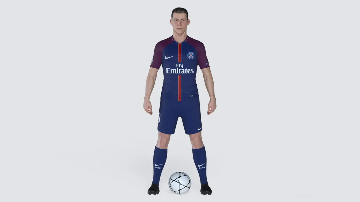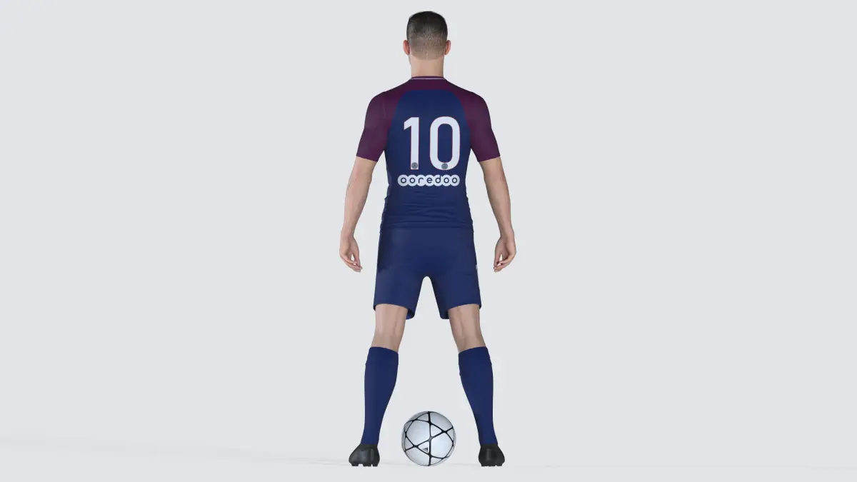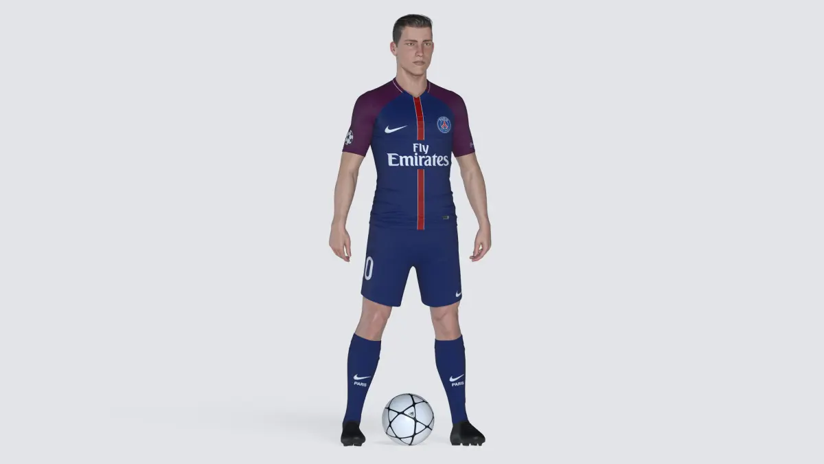 WARNING: the exchange formats are not rigged.Hi-res football/soccer player model (ball included, see above images) for rendering projects.The model is fully rigged with 3ds Max CAT, textured and shaded for V-Ray.The scene includes 14 different uniforms (the materials are already set up in the material editor), 10 of which are of top european clubs, and the remaining 4 are generic ones.The following textures are used:
