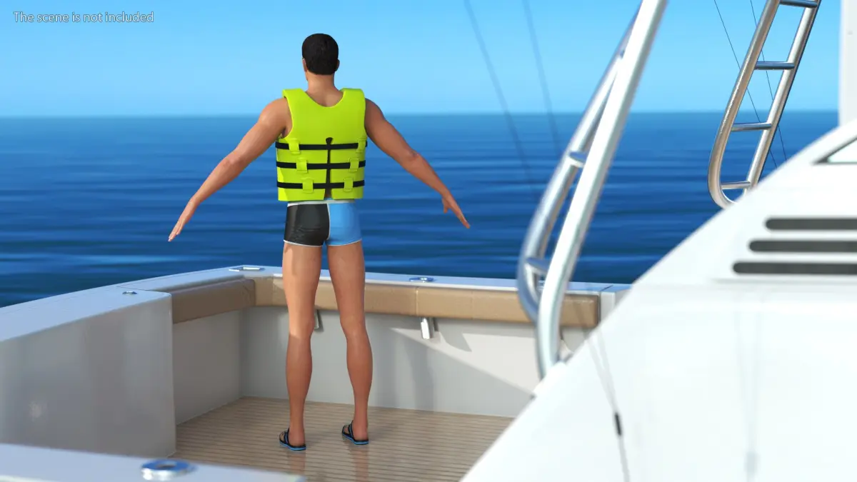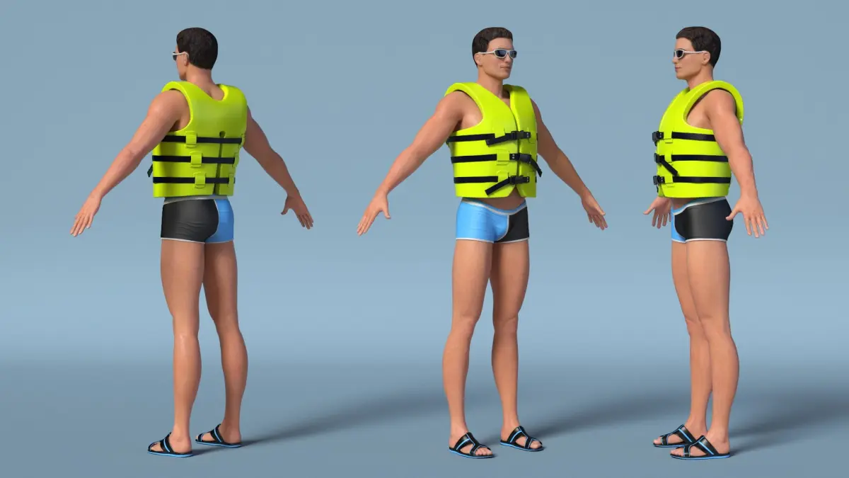 Male in Swimwear and Life Vest is a three-dimensional model of a stylish and practical life vest designed for aquatic activities and water sports enthusiasts.