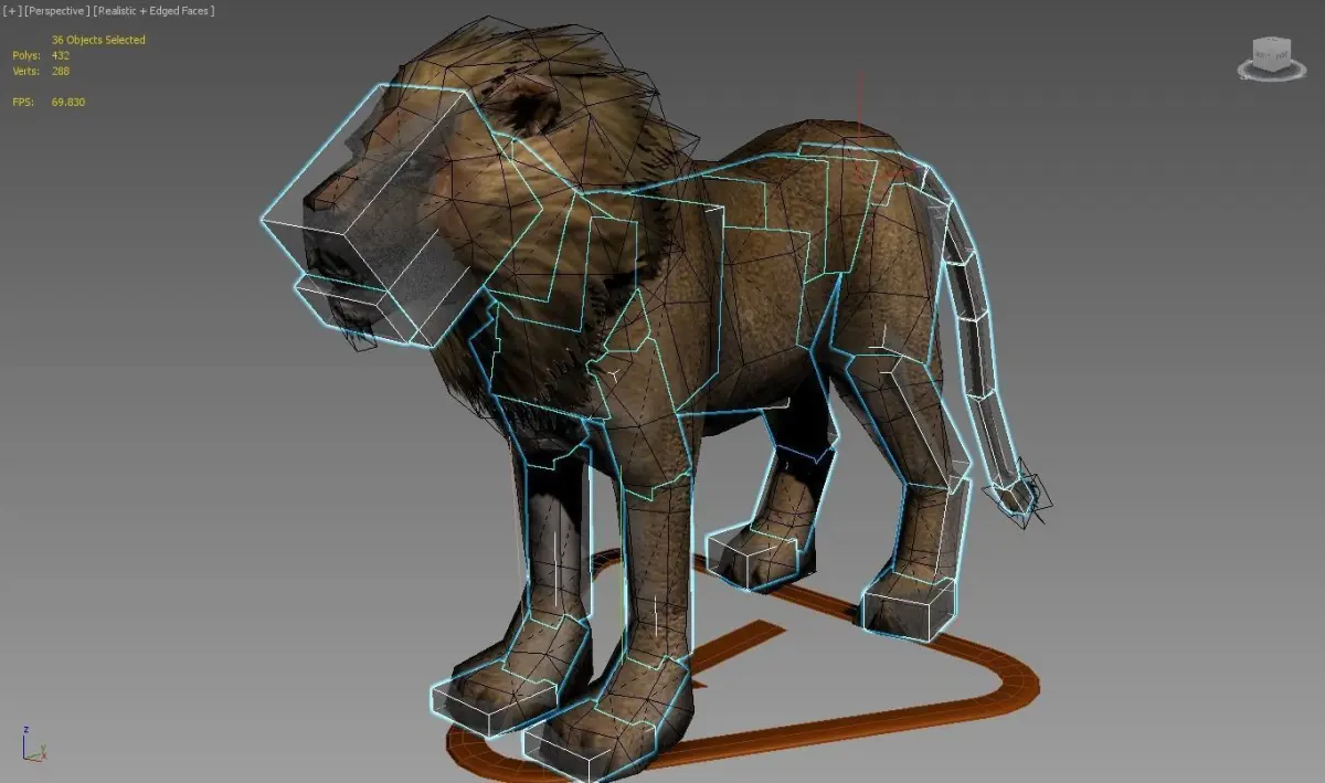 A Male Lion model, low poly and game ready, built in 3D Studio Max 2016 and setup with Standard material. Features textures at 1024 resolution ranging from Diffuse , Glossiness , Specular Color , Specular Level , Normal and Opacity maps.