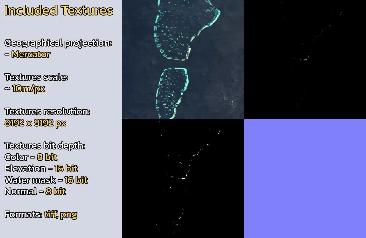 - Textures resolution: ~10m/px