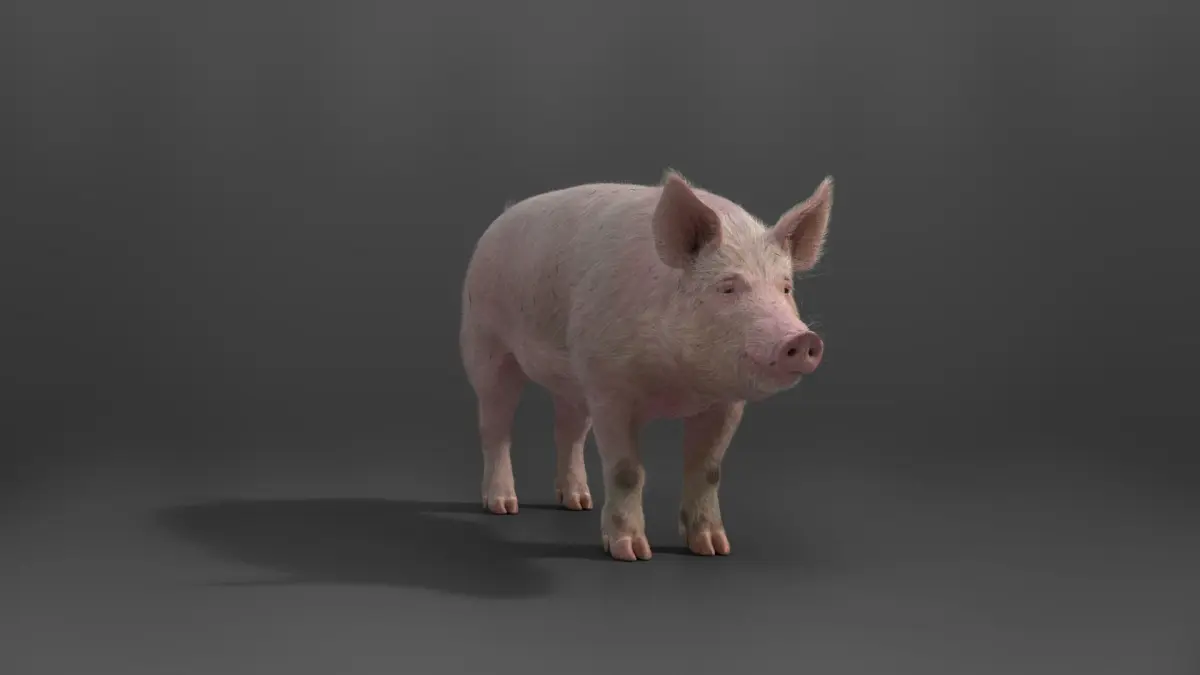 This is a high-quality male large white pig model with multiple 4K textures, fur, rigging, and animations, and it's made with Blender and Cycles renderer in a real-world scale. The skin texture and the hair texture are made separately for realism. Besides, 4 loopable animations and 3 unlooped animations are available.