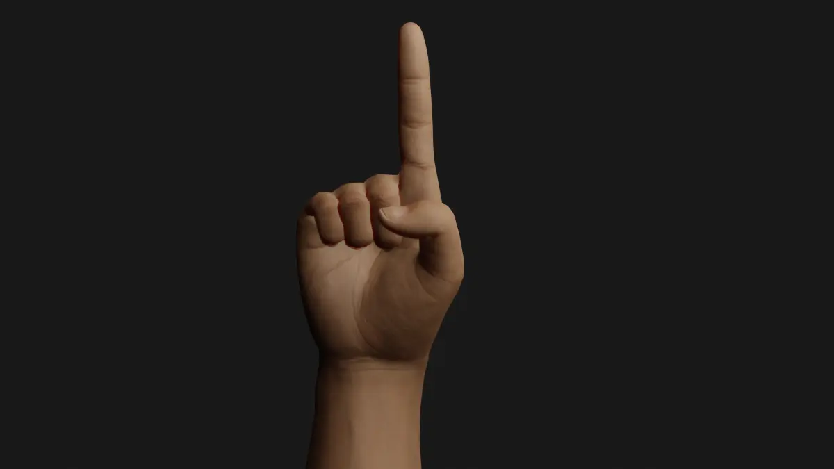 This 3D model of rigged male right hand is made in Blender and rendered in Eevee.