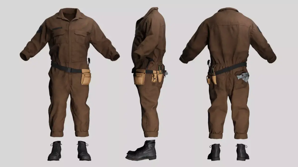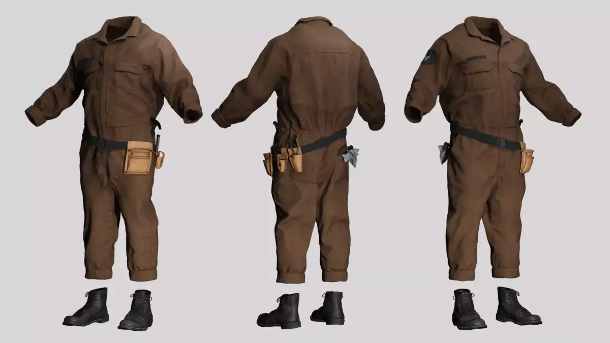 Professionally Textured: Realistic fabric wear and leather textures suitable for PBR workflows.Game Ready: Low poly topology optimized for real-time rendering in Unity or Unreal Engine.Detailed Accessories: Includes a fully modeled tool belt with pouches and tools to add narrative depth to your character.Versatile: Suitable for mechanics, factory workers, engineers, or wasteland survivors.