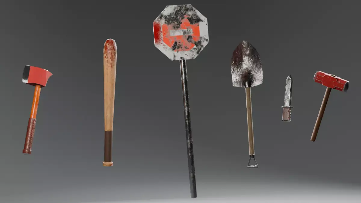 Enhance your game's survival elements with this high-quality, game-ready collection of apocalyptic melee weapons. This pack features 6 distinct, ready-to-use tools designed for first-person or third-person action games, RPGs, or survival horror genres.Each model has been meticulously crafted to provide a gritty, weathered look with realistic blood splatters, perfect for post-apocalyptic settings. The assets are optimized for performance without sacrificing visual fidelity.Included Models:Firefighter's Axe (Red head, weathered wood handle)Baseball Bat (Classic wood grain with worn grip)Octagonal Stop Sign Spear (Makeshift weapon with worn pole)D-Handle Shovel (Durable metal blade with wooden handle)Combat/Survival Knife (Black blade, rugged grip)Heavy-Duty Sledgehammer (Industrial style, perfect for breaching)Technical Details: