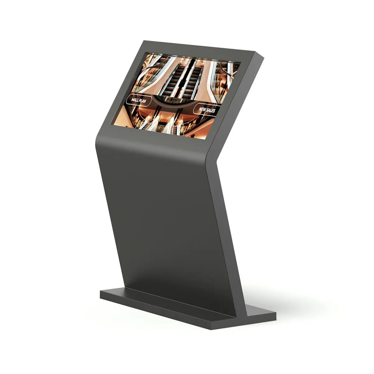 Black mall display 3d model with a touchscreen. Compatible with 3ds max 2010 (V-Ray, Mental Ray, Corona) or higher, Cinema 4D R15 (V-Ray, Advanced Renderer), FBX, OBJ and Unreal Engine.