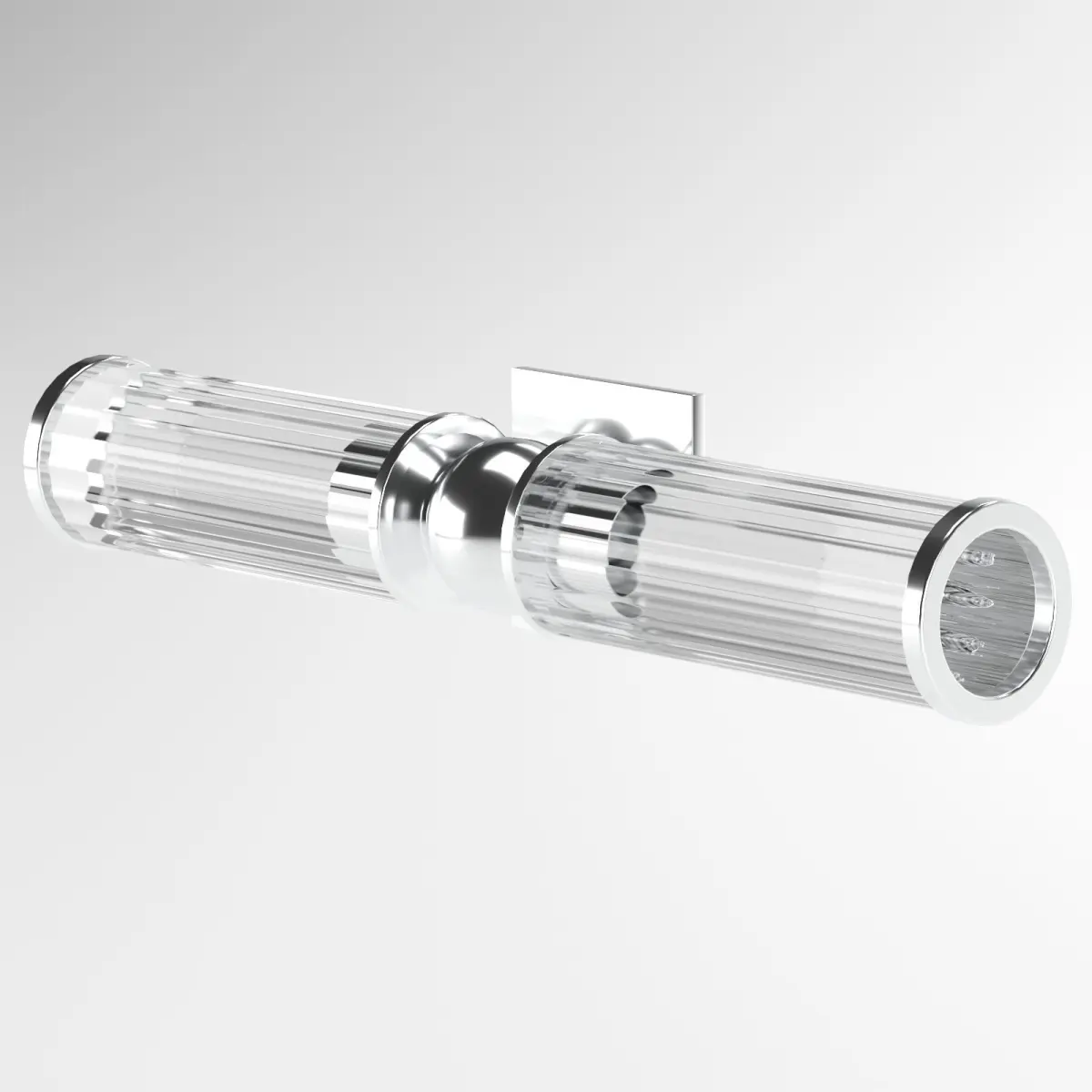 Some possible tags for this lamp in 3D stock might include: wall sconce, polished nickel, white glass shade, modern design, ambient lighting, task lighting, dimmable, hardwired, E26 medium base, 60W maximum.