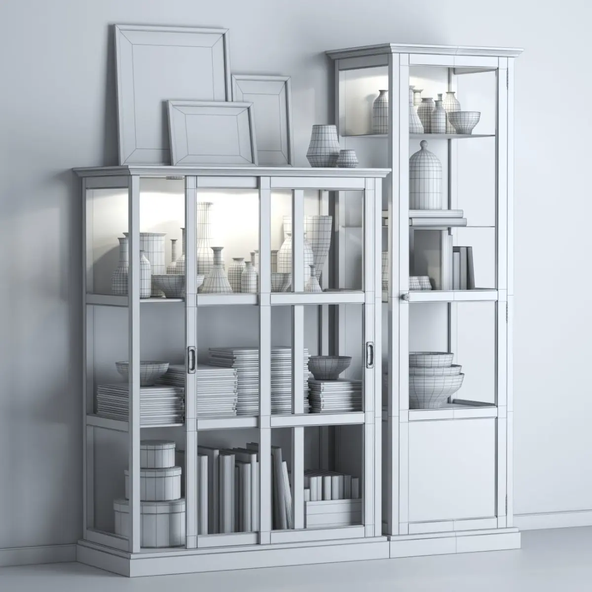 Glass-door cabinet keeps your favorite items free from dust but still visible.