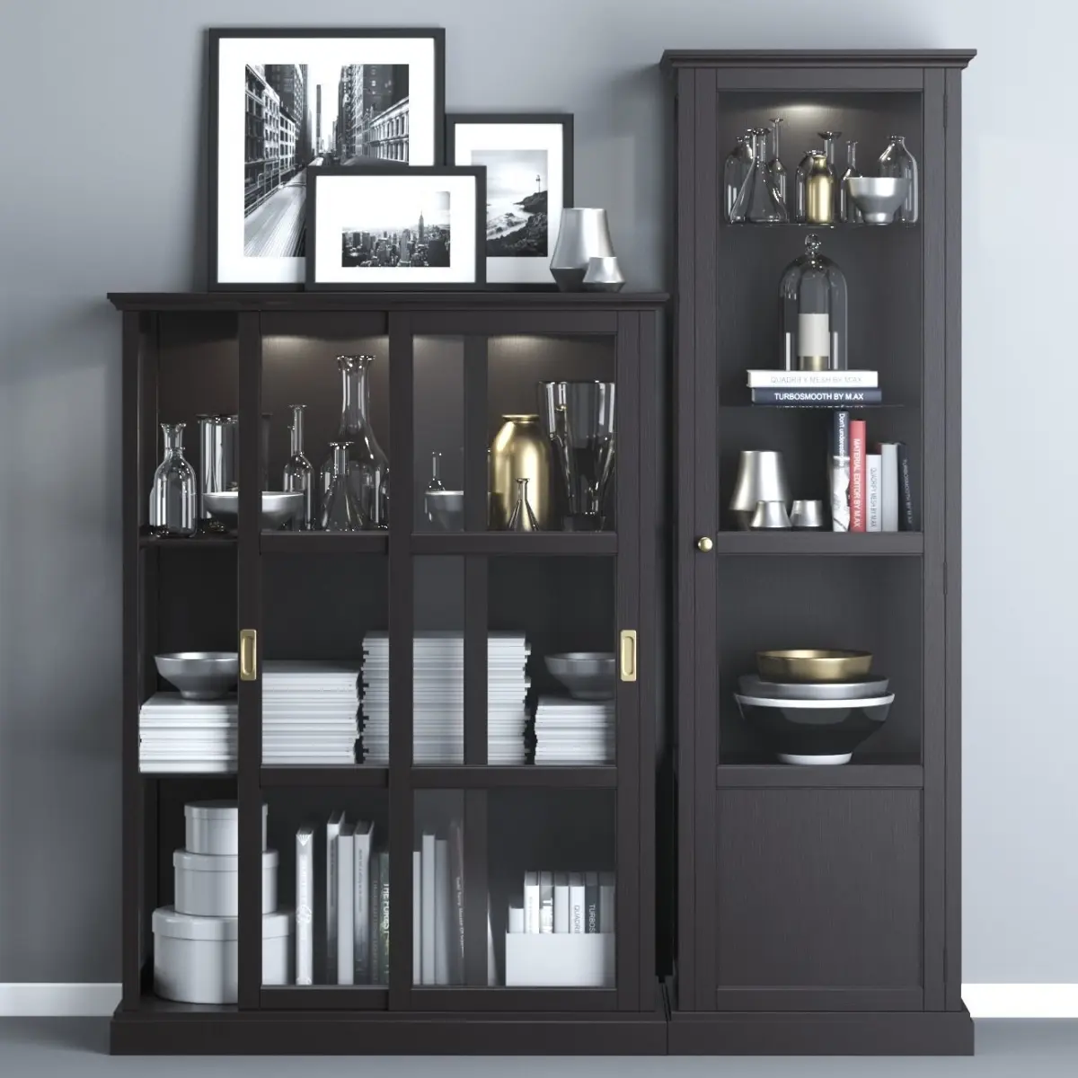 MALSJÖ Glass-door cabinets, black stained black stained.