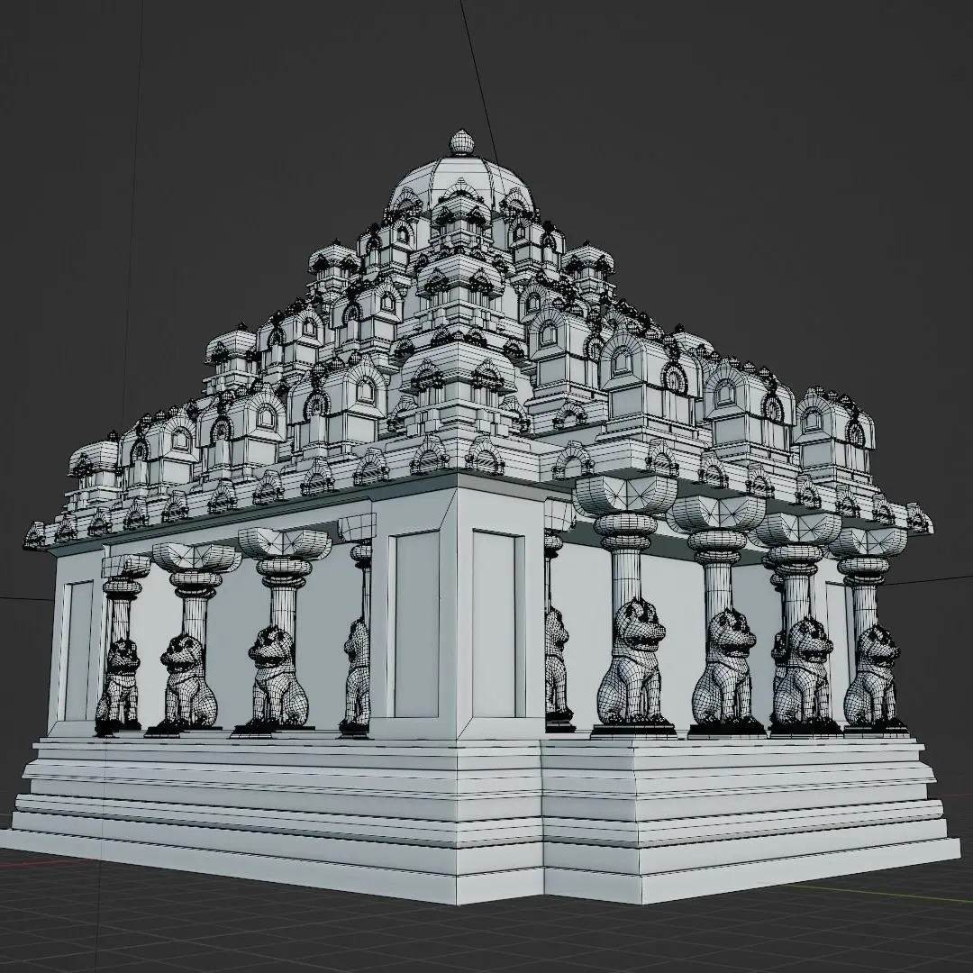 This temple Type-3 was modeled in blender , UV mapped without texture, available in Blend, .OBJ, .FBX format. Ref. photos taken from the net. It is a single mesh, any free sand stone texture can be dragged and dropped on this model from blenderkit, ambientCG or Polyhaven sites.
