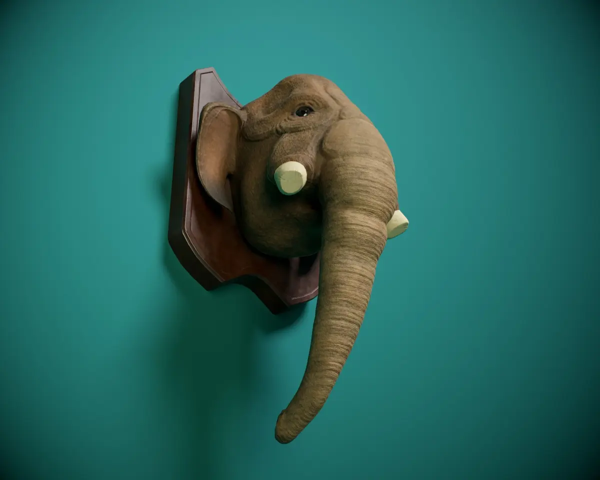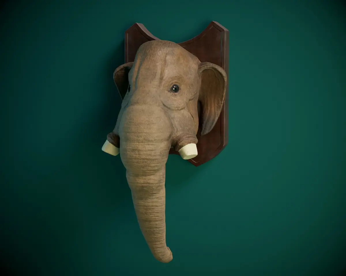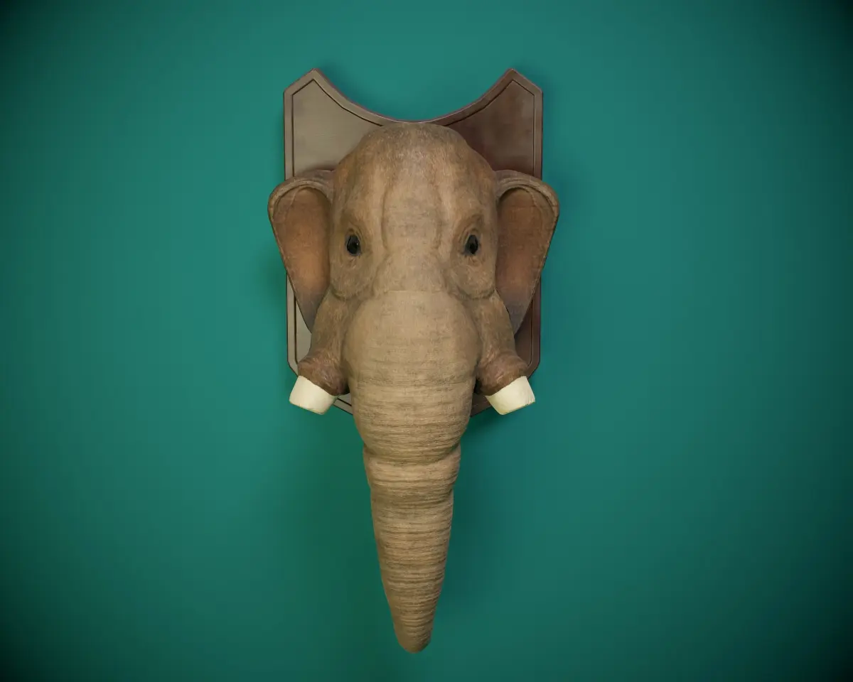 Low-poly PBR Mammoth Elephant Head model intended for game/realtime/background use.