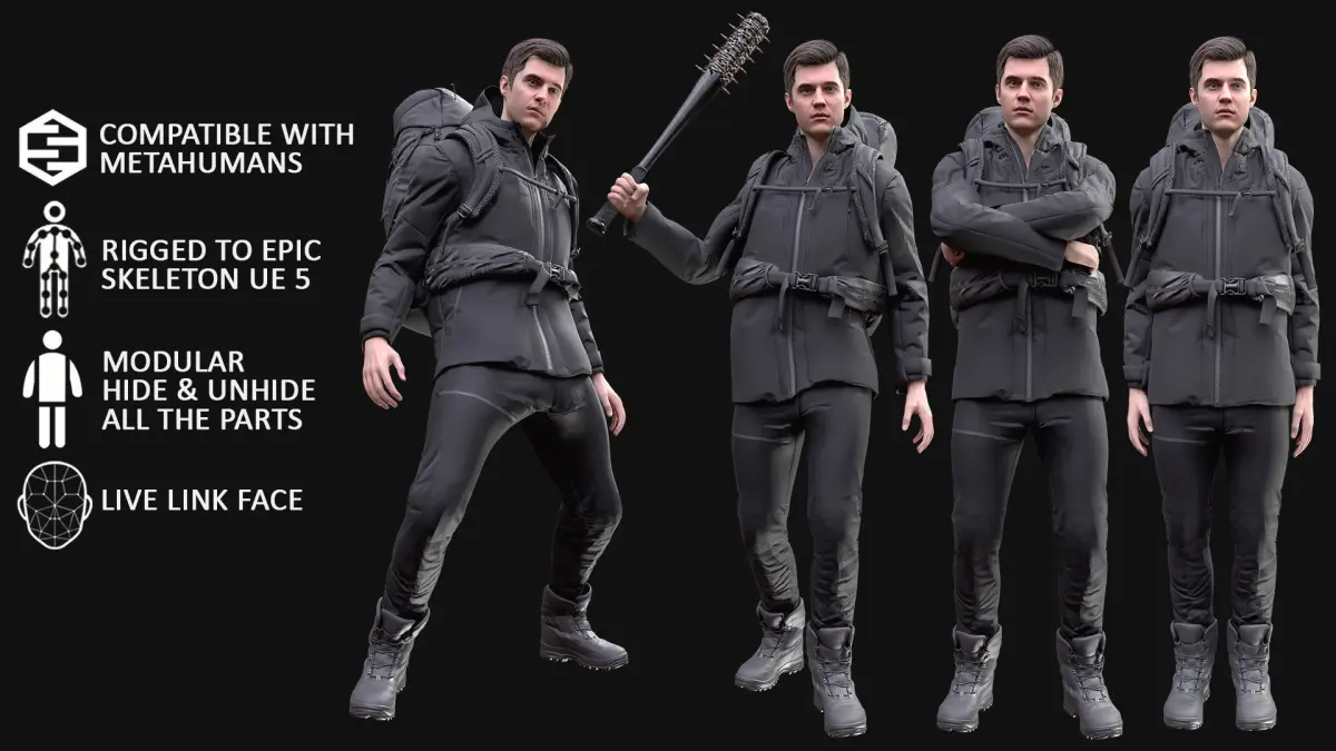 - UE 5.1-5.2 - Rigged to Metahuman Skeleton, Modular (Body + Clothing)