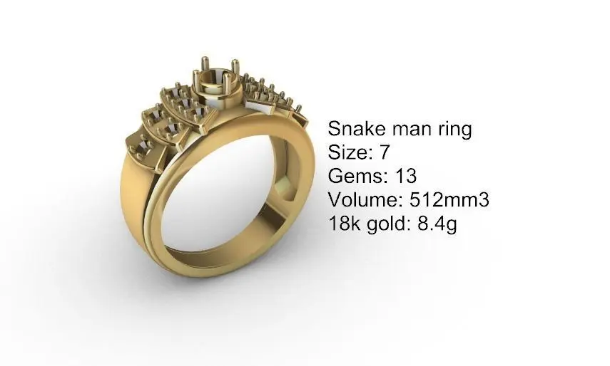 Anillo hombre moñoTalla: 7Gemas: 13Volumen: 512mm3Oro 18k: 8,4g