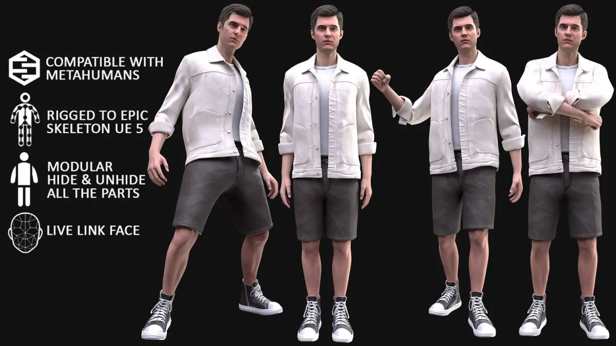 (New version - UE 5.1-5.2) 100% compatible with male Metahuman (Normal/Average body - MH Skeleton)This is not a Metahuman's body and face. This is our creation.But this body has exactly the same shape as the Metahuman's body (Normal/Average)So you can put this Outfit on your Male Metahuman (Normal/Average)