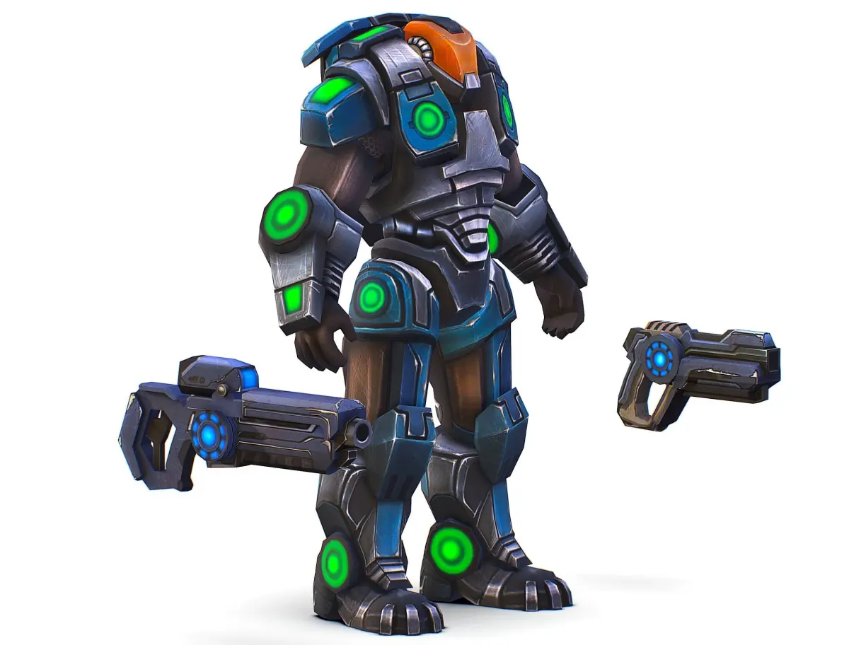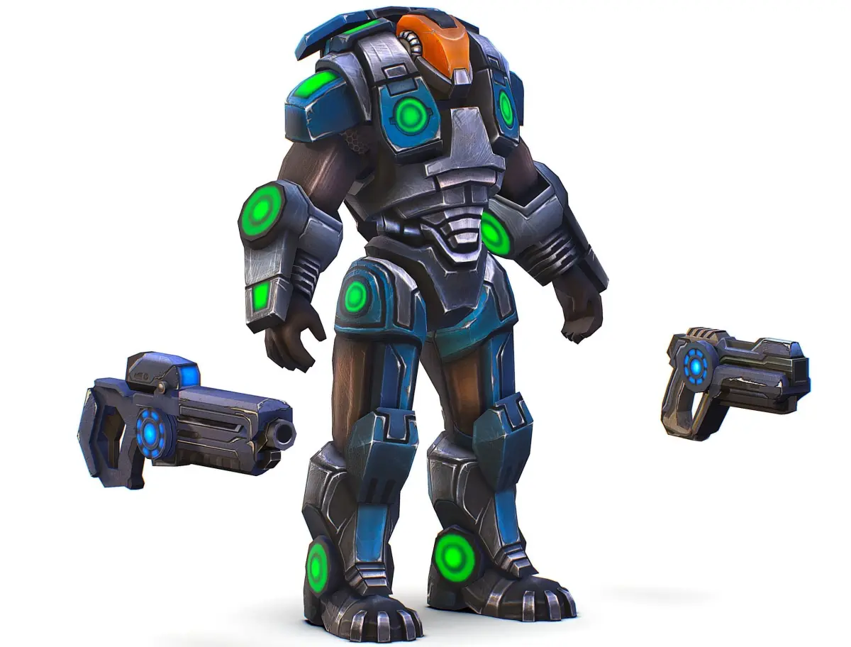 HomeCatalogMan Cyborg - Male Soldier with Automatic Rifle and Pistol Low-poly 3D model