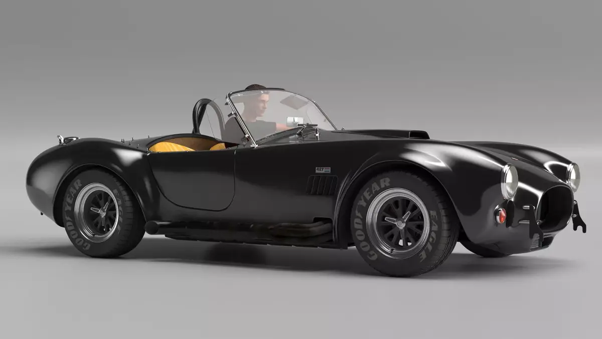 Man Driving Shelby Cobra 1965 is a high quality, photo real 3d model that will enhance detail and realism to any of your rendering projects. The model has a fully textured, detailed design that allows for close-up renders, and was originally modeled in 3ds Max 2020 and rendered with V-Ray. Renders have no postprocessing!