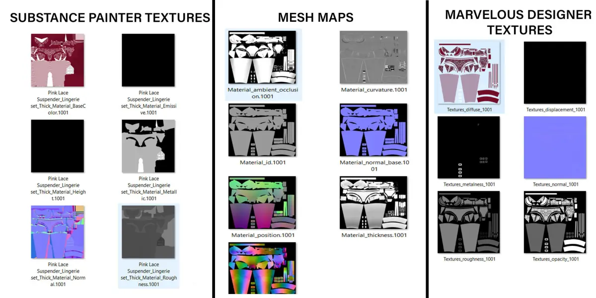 UV MAPPED TEXTURES- Marvelous designer and Substance Painter Textures/Mesh Maps.