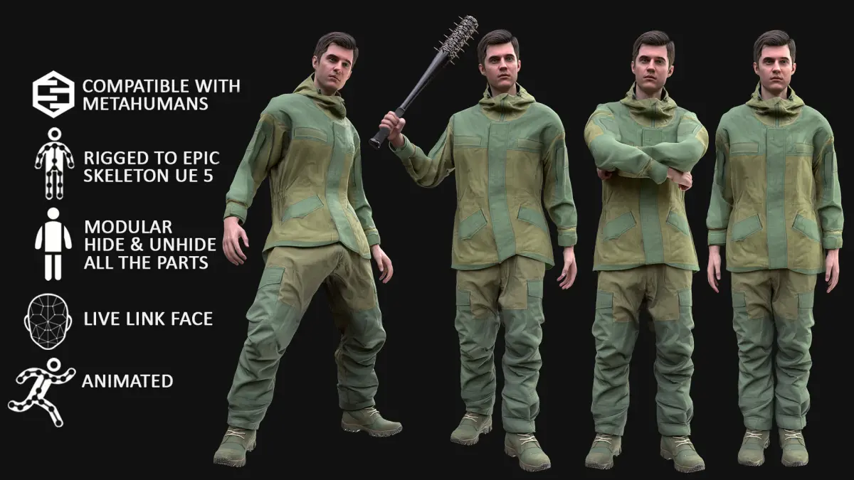 - UE 5.1-5.2 - Rigged to Metahuman Skeleton, Modular (Body + Clothing)