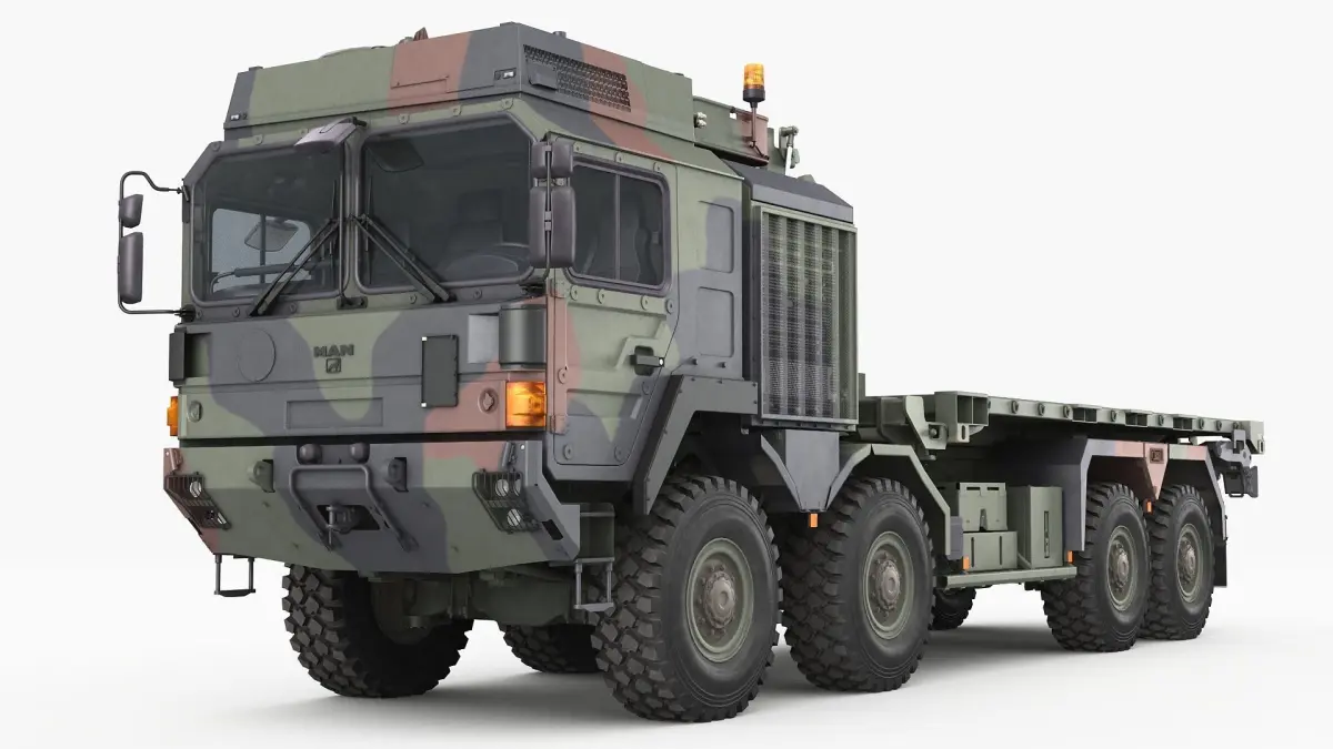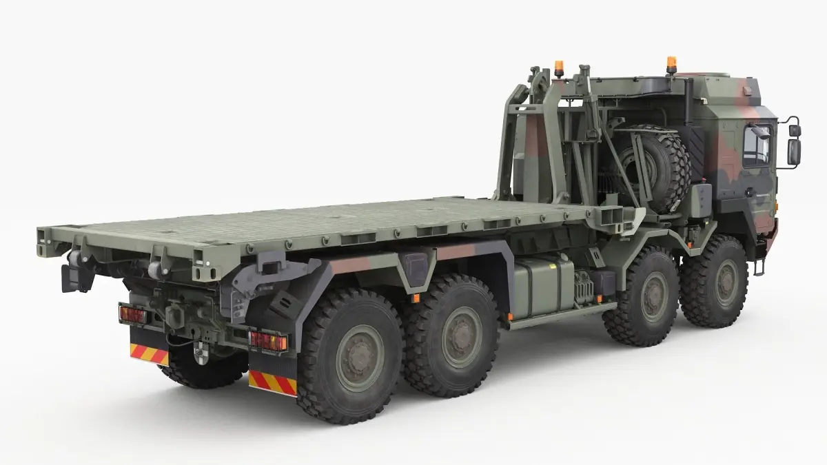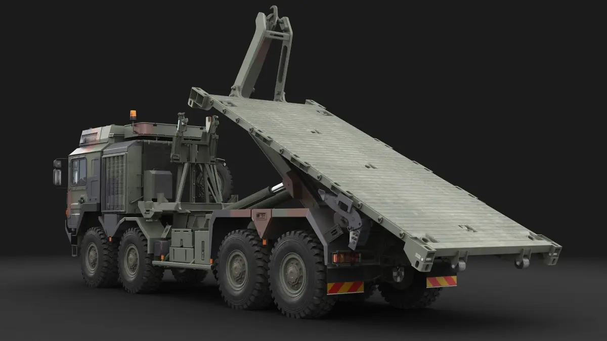 The MAN HX77 trucks are specially designed tactical military trucks manufactured by Rheinmetall MAN Military Vehicles (RMMV).This truck is equipped with a hydraulic hooklift that can transport platforms, bodies and similar container. The system uses a series of hydraulic cylinders to engage, lift and lift a container onto a truck chassis.