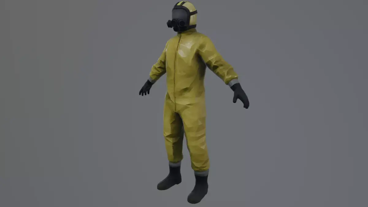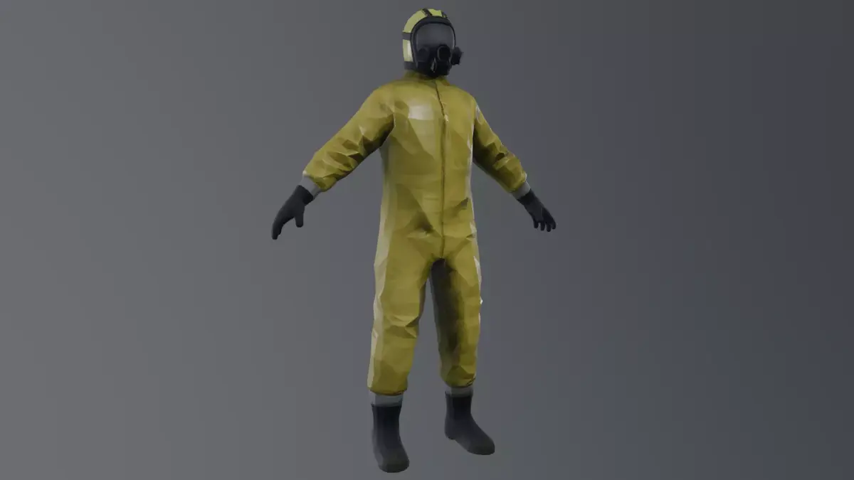This 3D model represents a full hazmat-style protective suit, suitable for scenes that involve hazardous environments, contamination, or industrial safety. It works well for characters meant to look isolated, protected, or operating in dangerous conditions. The simple, readable design makes it easy to place into environments like laboratories, restricted zones, abandoned facilities, or disaster-related scenarios.