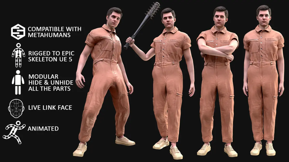 - UE 5.1-5.2 - Rigged to Metahuman Skeleton, Modular (Body + Clothing)