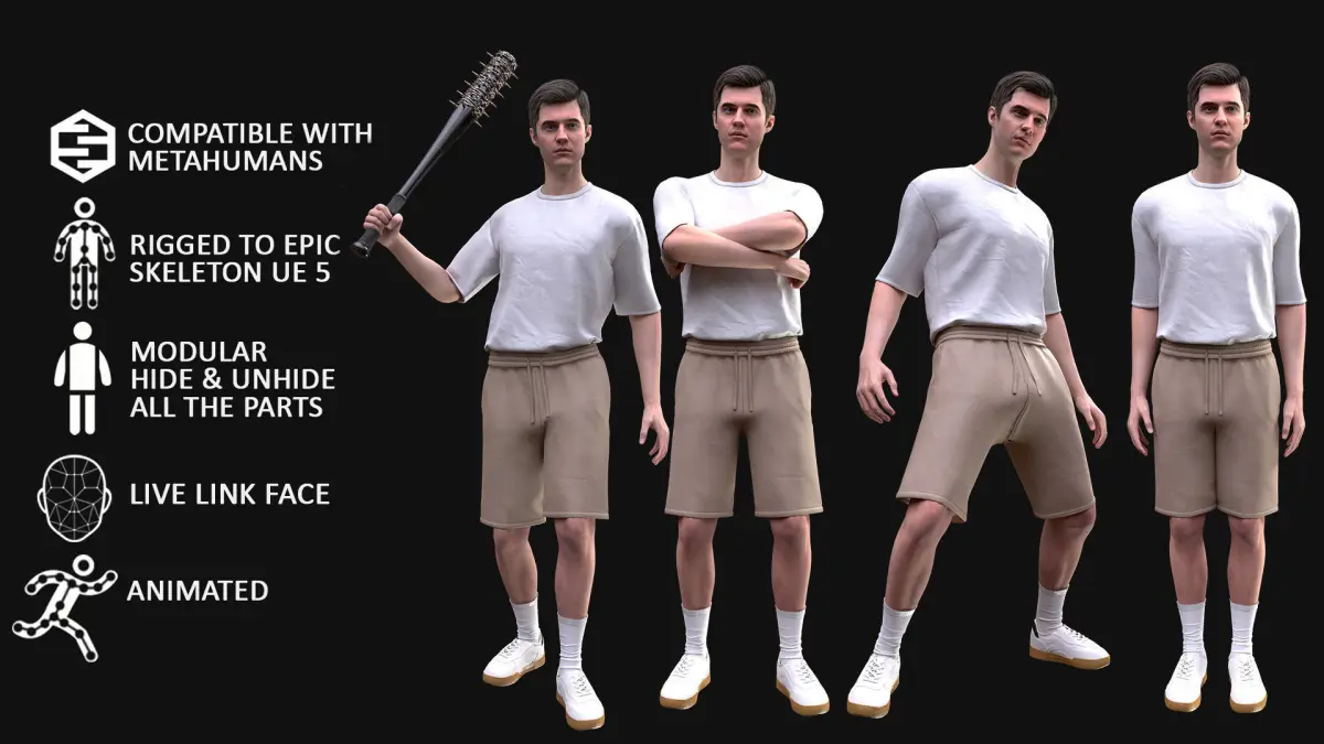 - UE 5.1-5.2 - Rigged to Metahuman Skeleton, Modular (Body + Clothing)