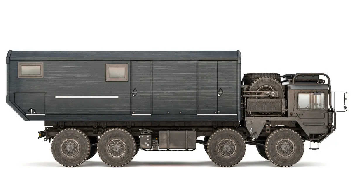 The four-axle truck is powered by a Deutz 8-cylinder Diesel engine with 360 hp, turbocharger and intercooler. Like the 5-, 7- and 10-ton classes, some of the vehicles have a Rotzler winch.