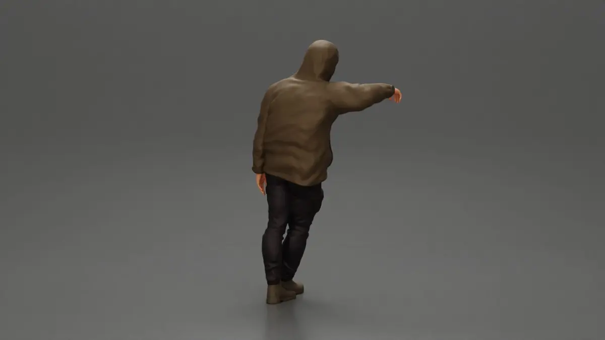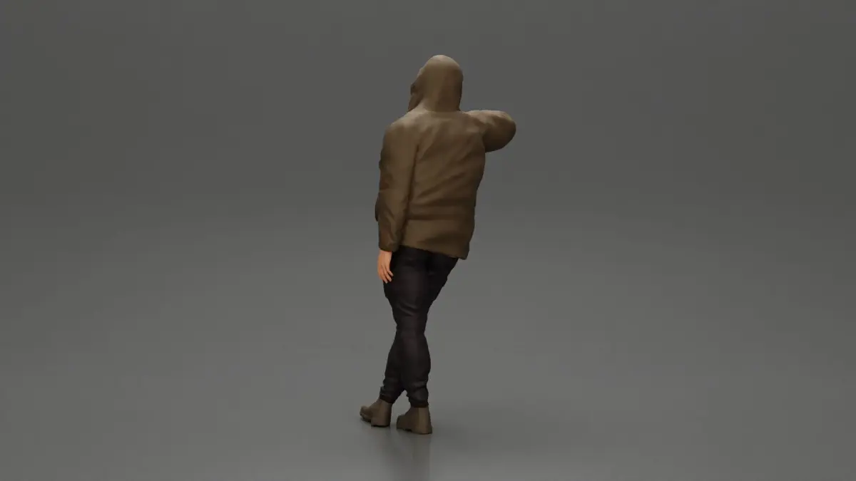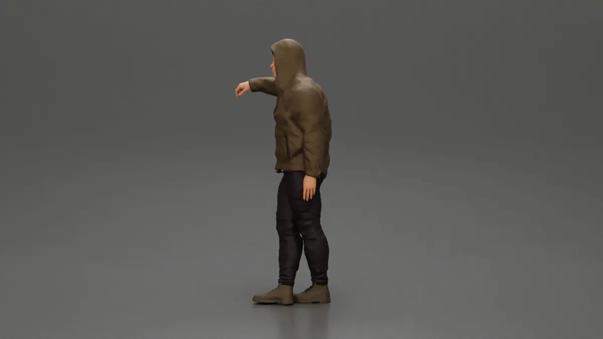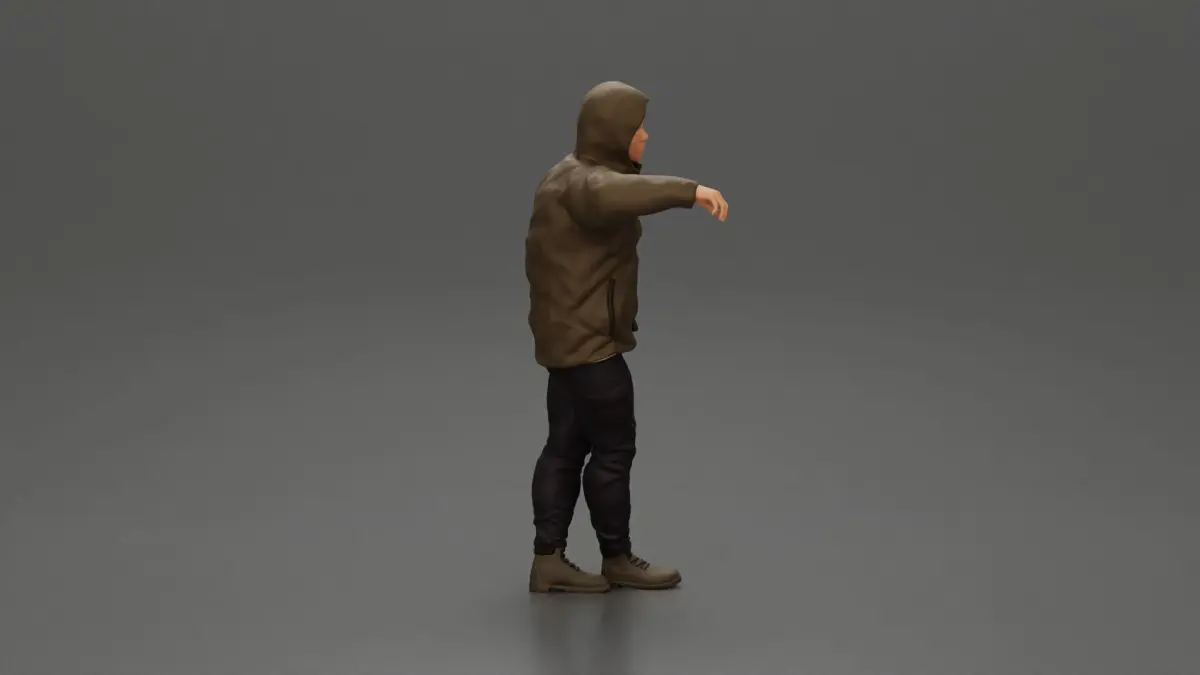 Home Catalog man leaning against the car wearing an open jacket with hood 3D print model