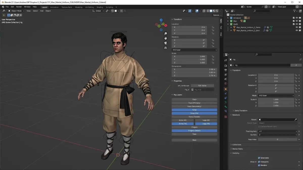 - However, the original Blender file is also available, and it is rigged (based on the rigify addon).