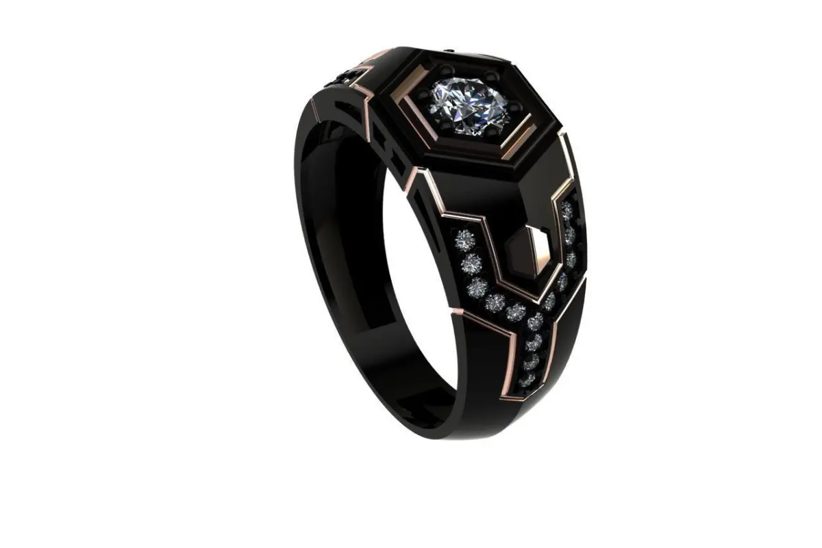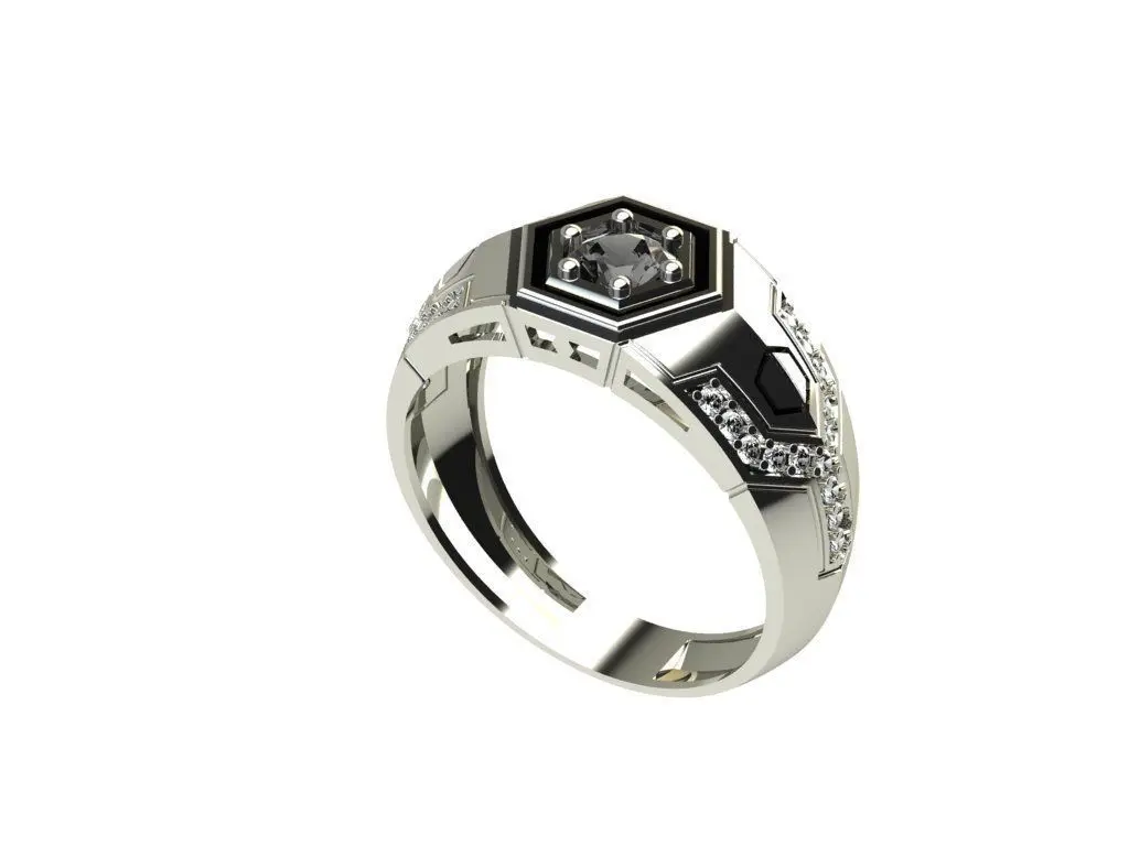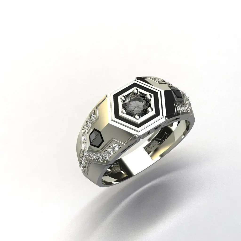 Man ring diamond enamel with diamonds