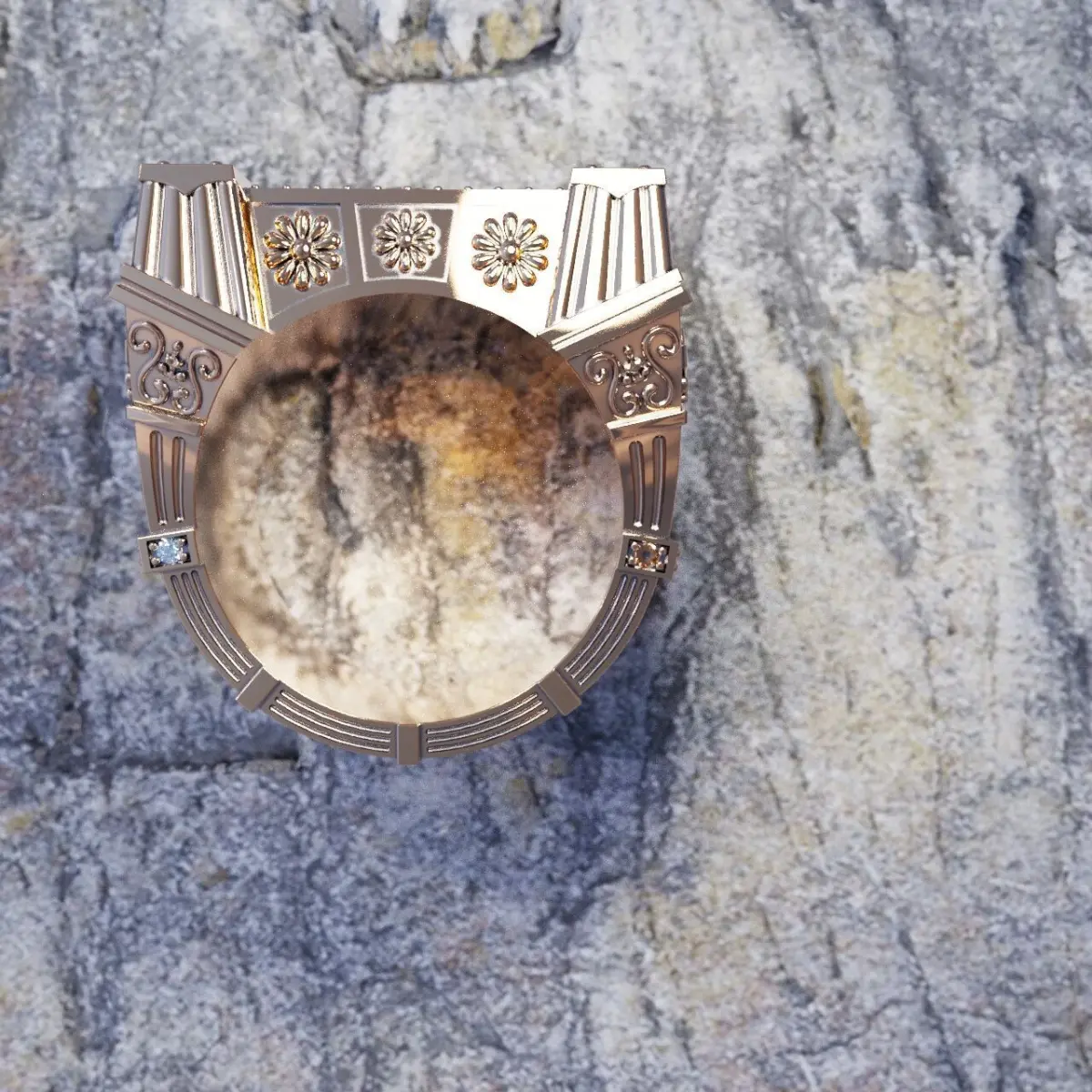 Men's ring with a bas-relief Guy Julius CeasarSize 21.5gems 3 mm 4 in 1.4 mm 42 inweight 31g in 585 goldThe ring consists of 2 parts. All items are not unbooted. Suitable for milling on 5 axis CNC machine.