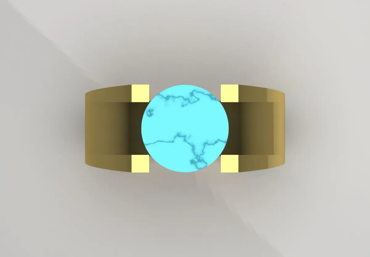 Men's Ring with Turquoise or Turquoise-like Stone and Modern Design Model MR0215 - Strength and Peace